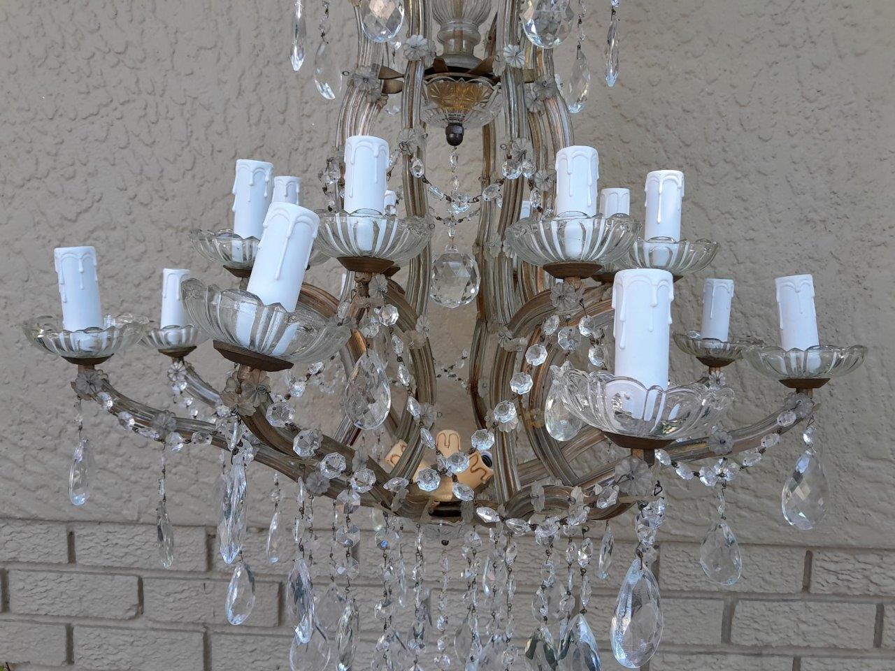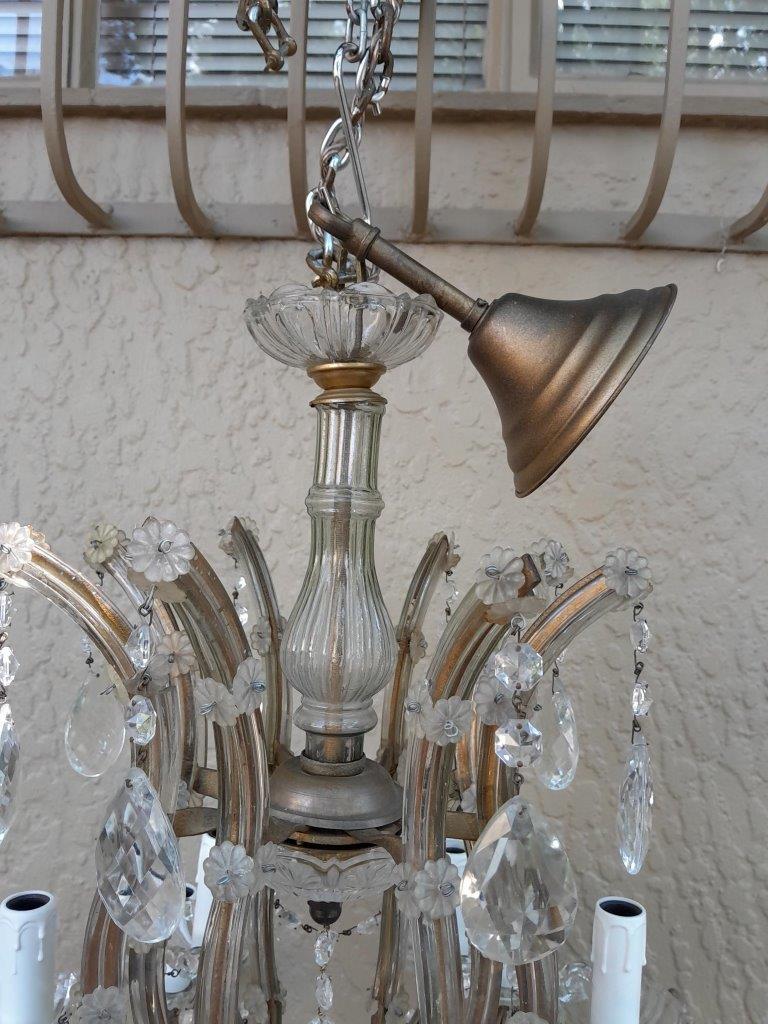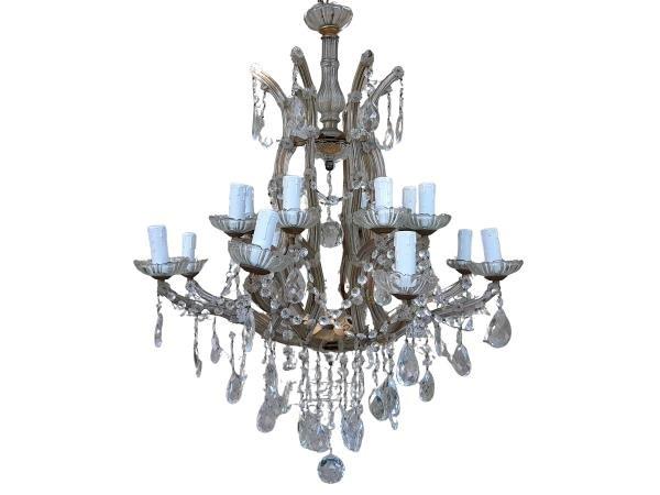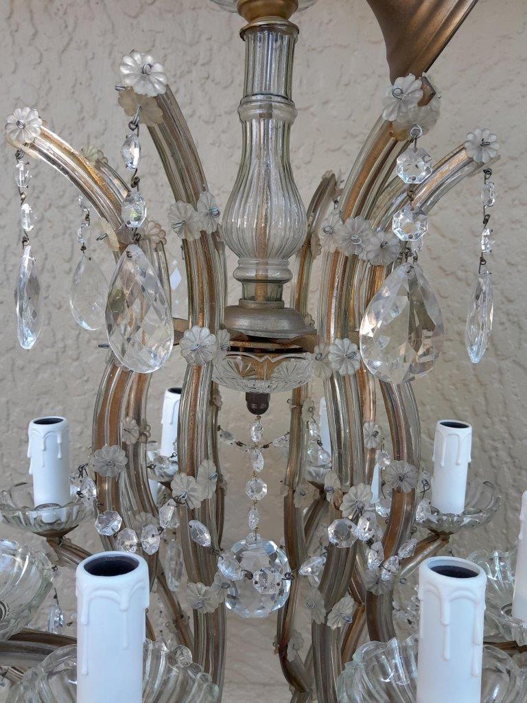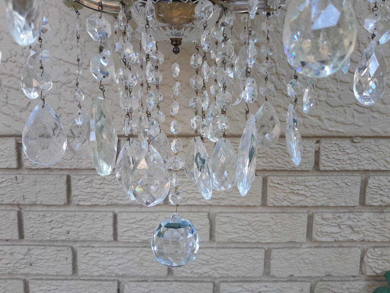 An Antique Early 20th Century Circa 1920 French Crystal And Gilt Metal Chandelier