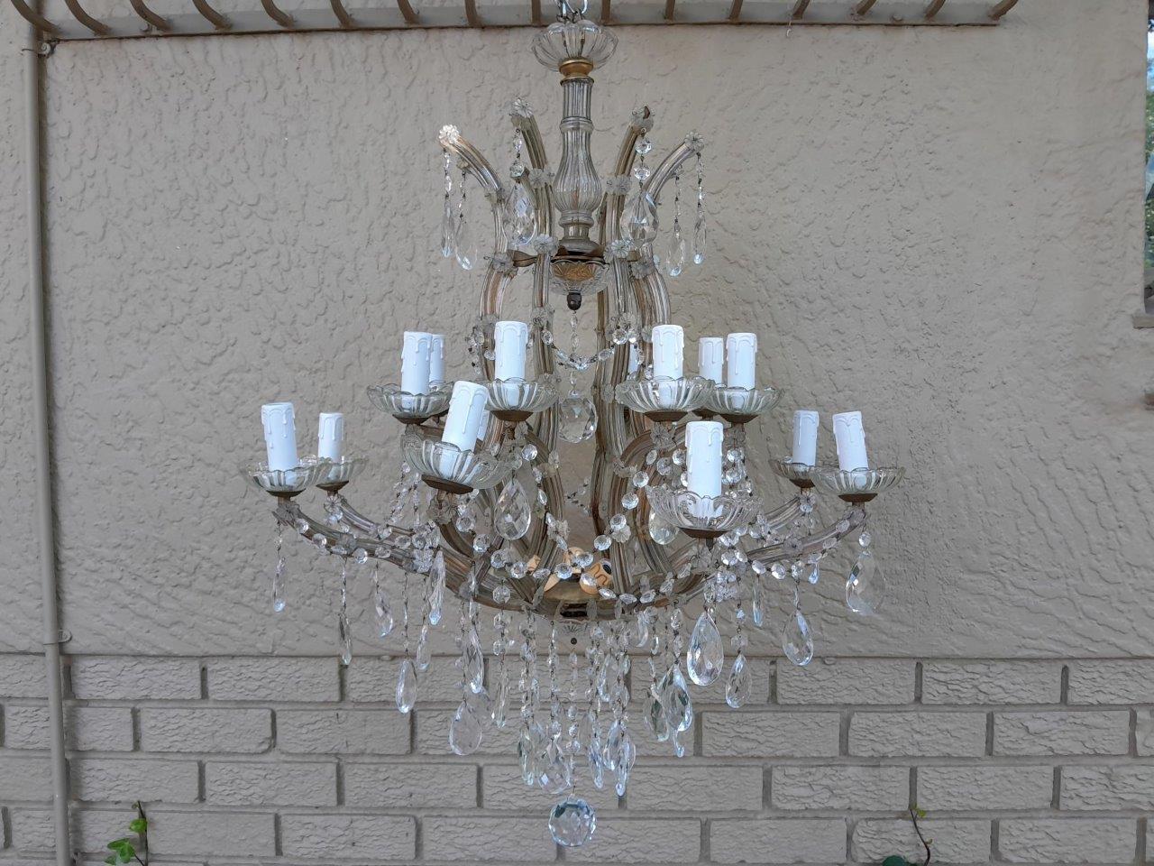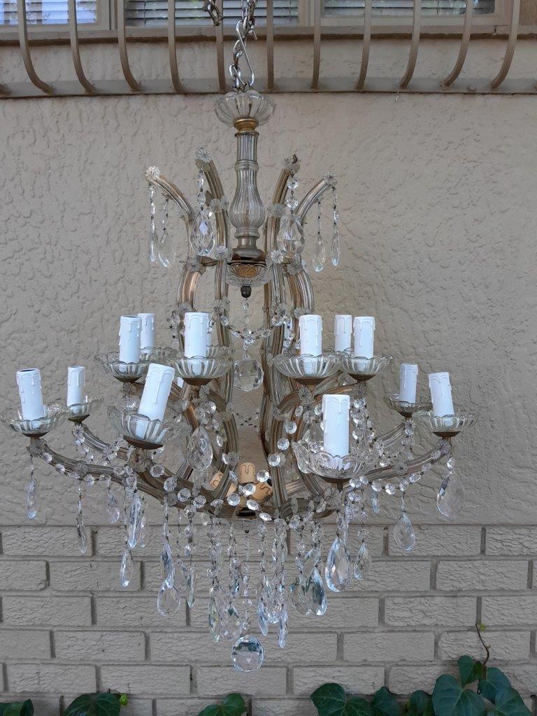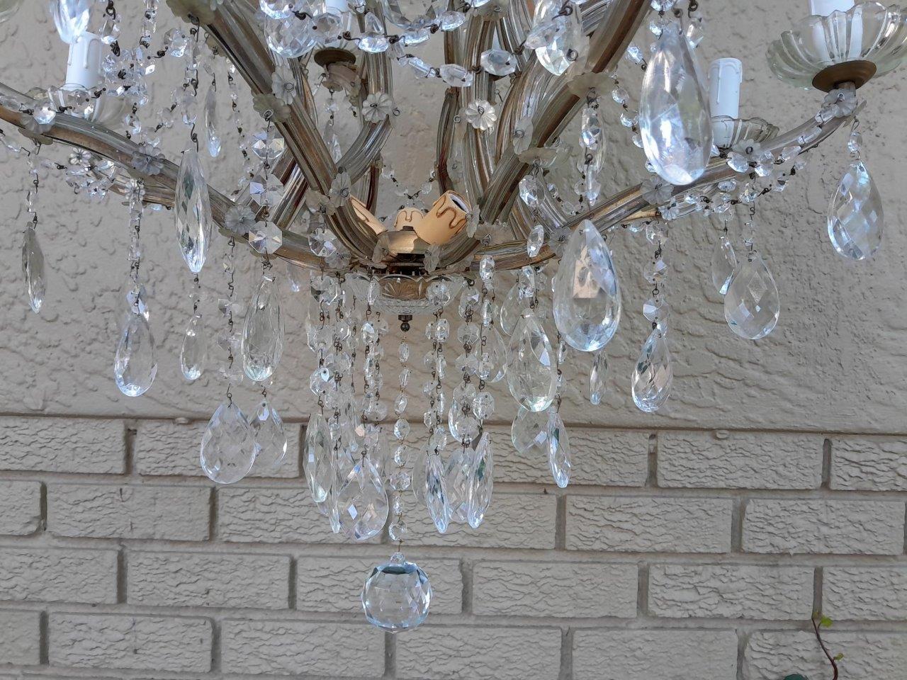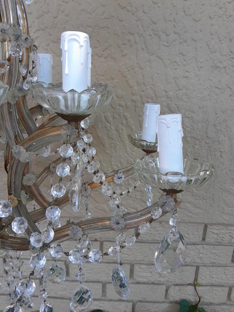 An Antique Early 20th Century Circa 1920 French Crystal And Gilt Metal Chandelier