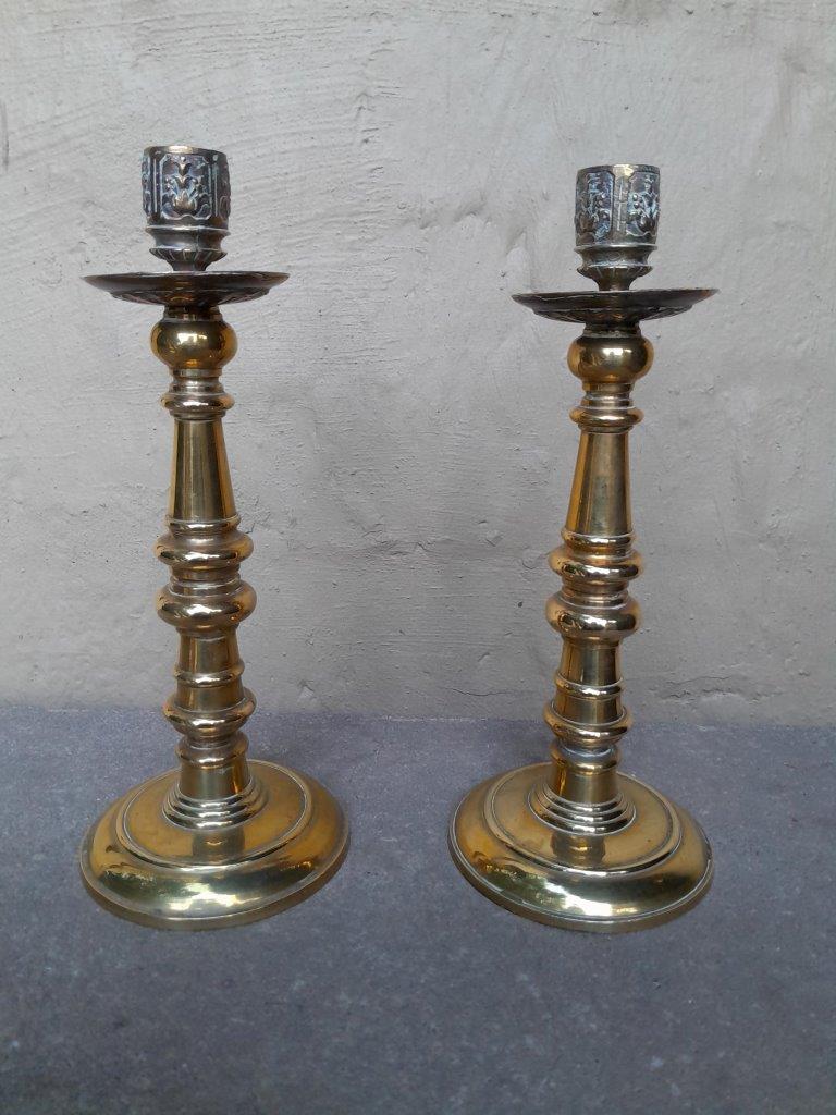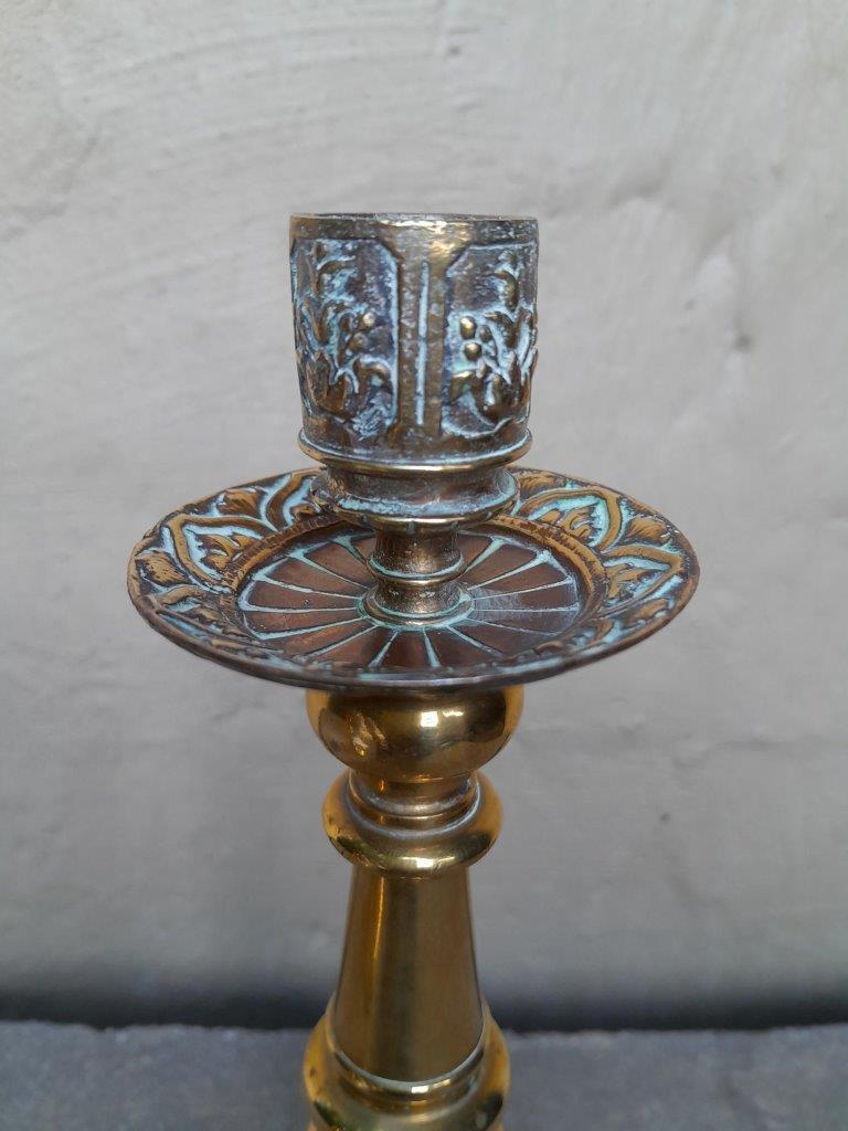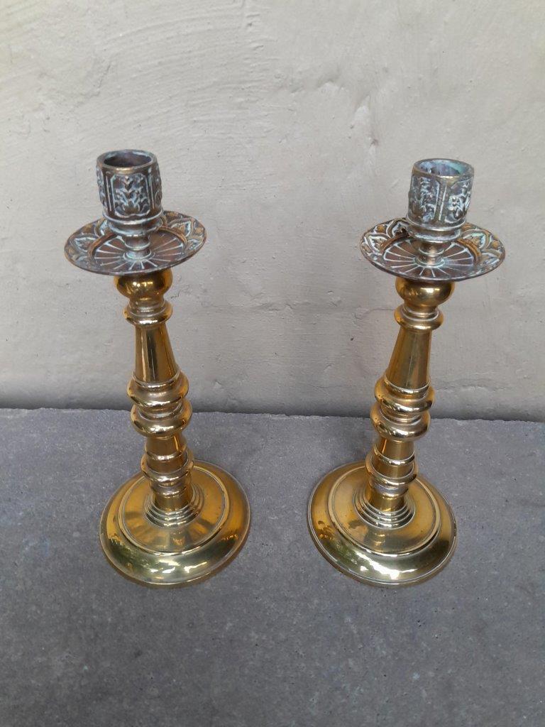 An Antique Early 20th Century Pair Of Brass Candle Sticks/Holders
