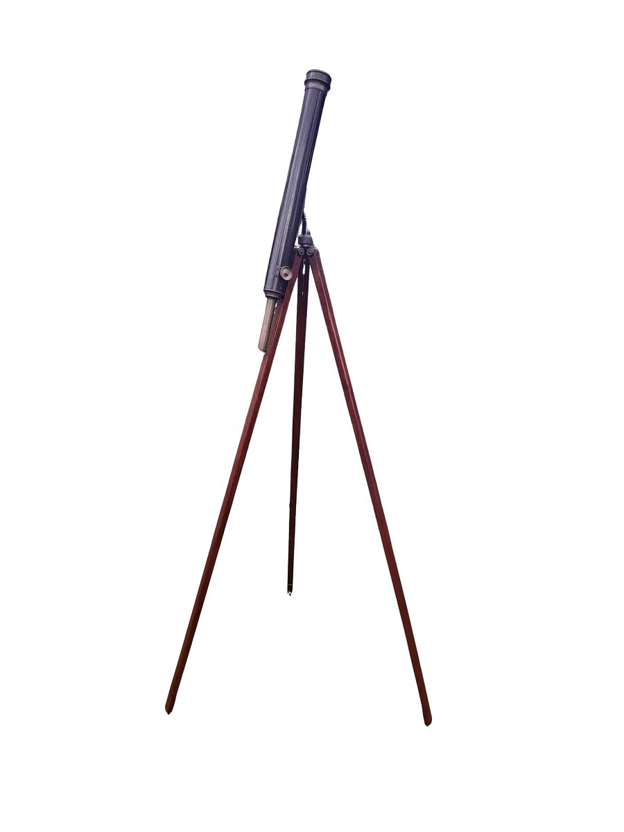An Antique Early 20th Circa 1920 Century British T. Cooke And Sons Ltd. Brass And Black Painted Telescope With Makers Name (Company Originally Founded By Thomas Cooke In 1837) With Lens Cap On Oak Folding Tripod