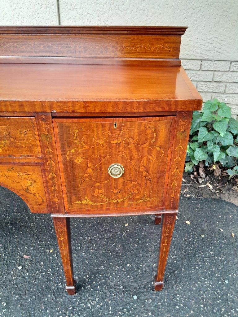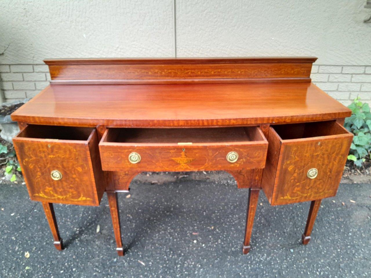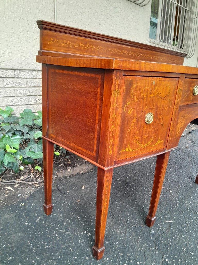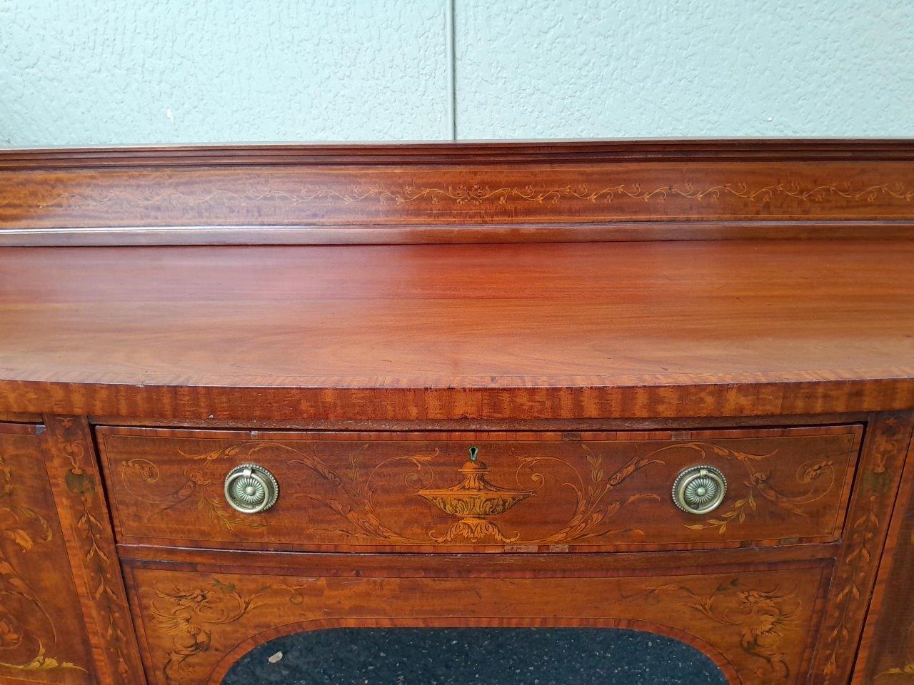 An Antique Edwardian Bowfront Mahogany And Inlay Sideboard With Drawers And Cupboard Doors