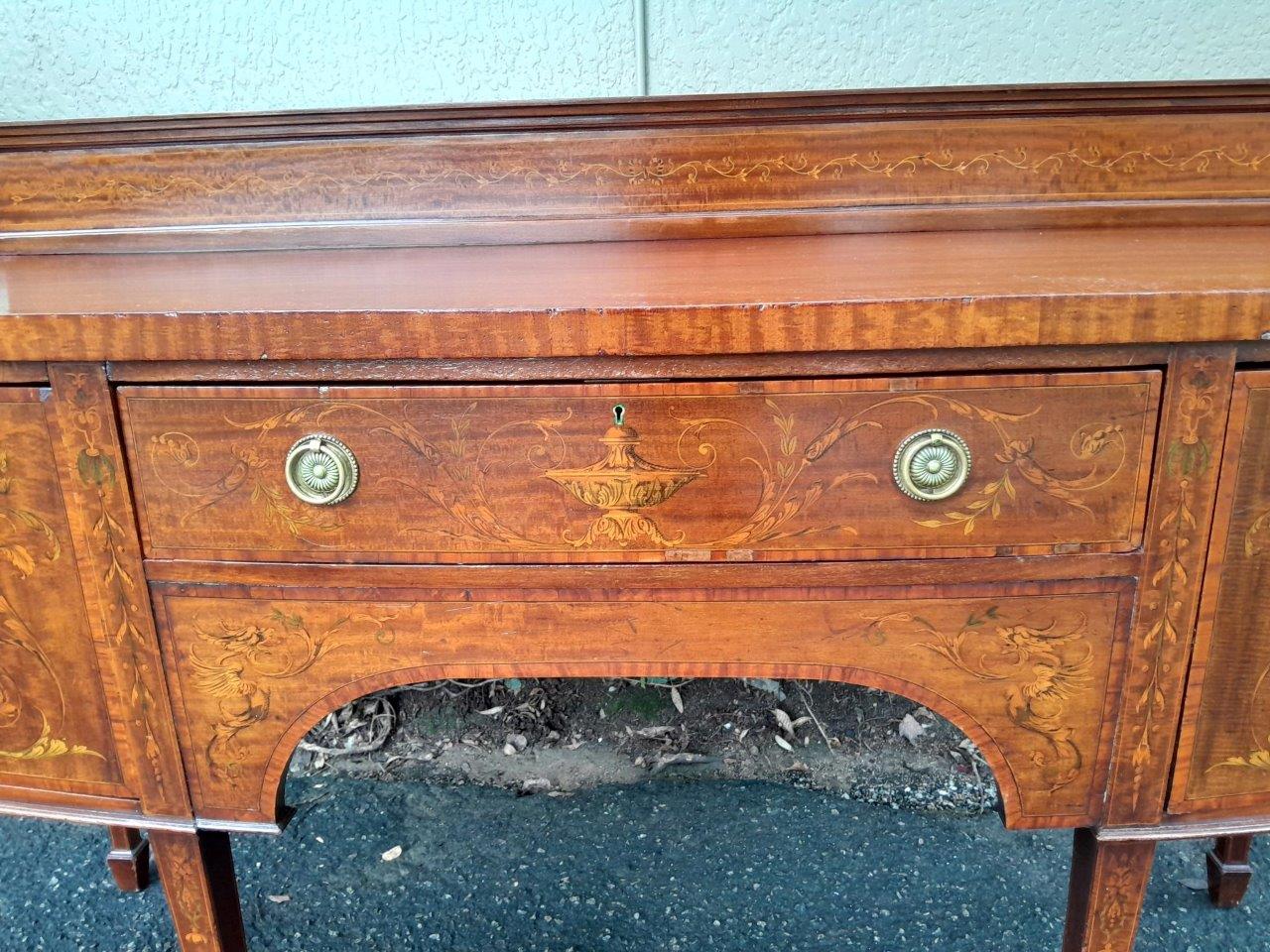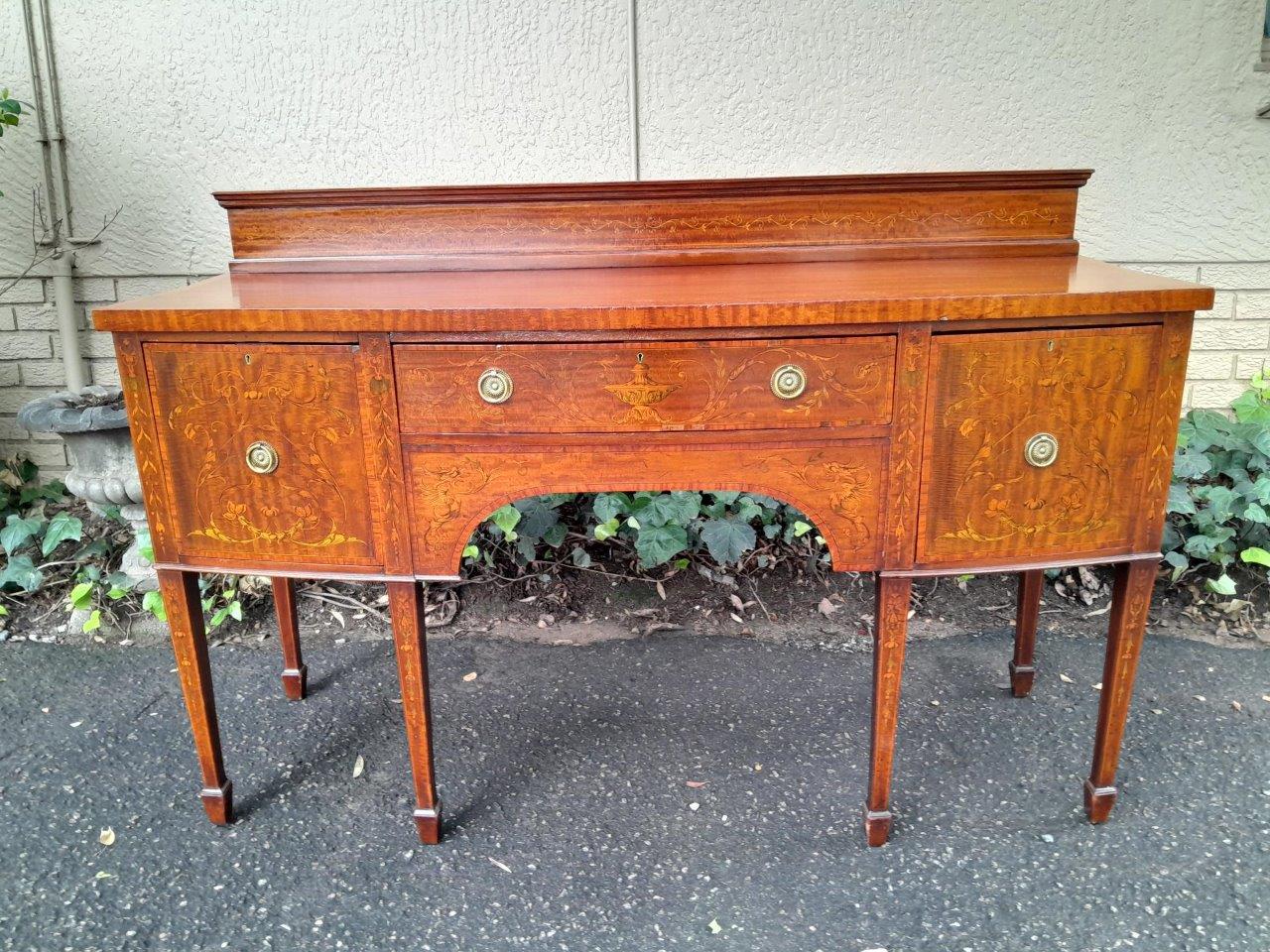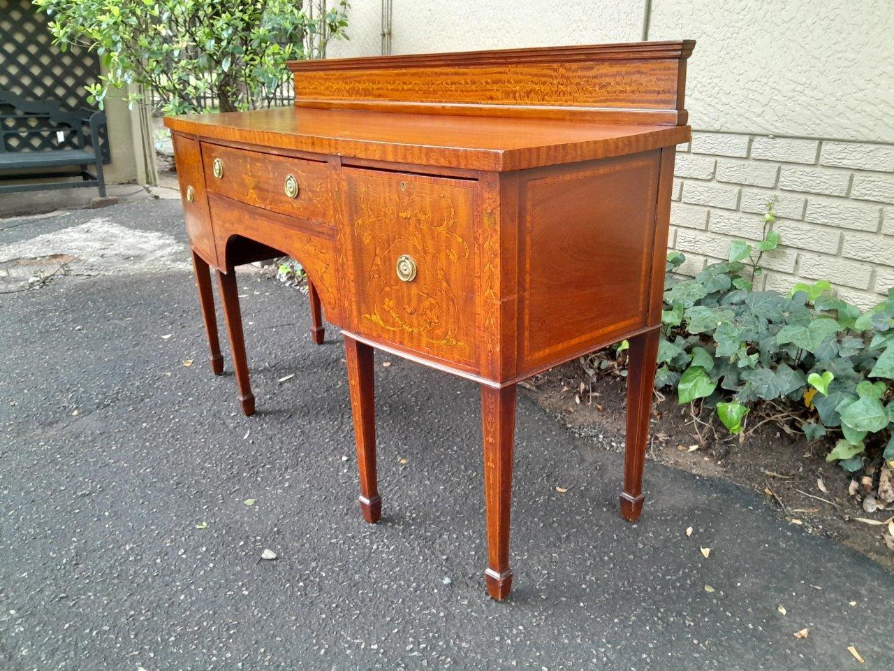 An Antique Edwardian Bowfront Mahogany And Inlay Sideboard With Drawers And Cupboard Doors