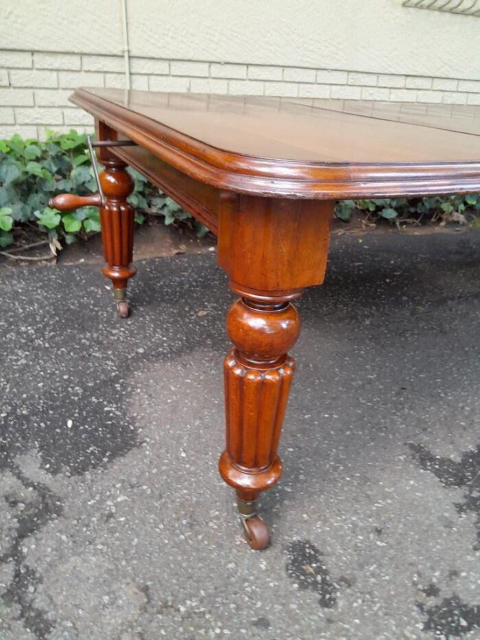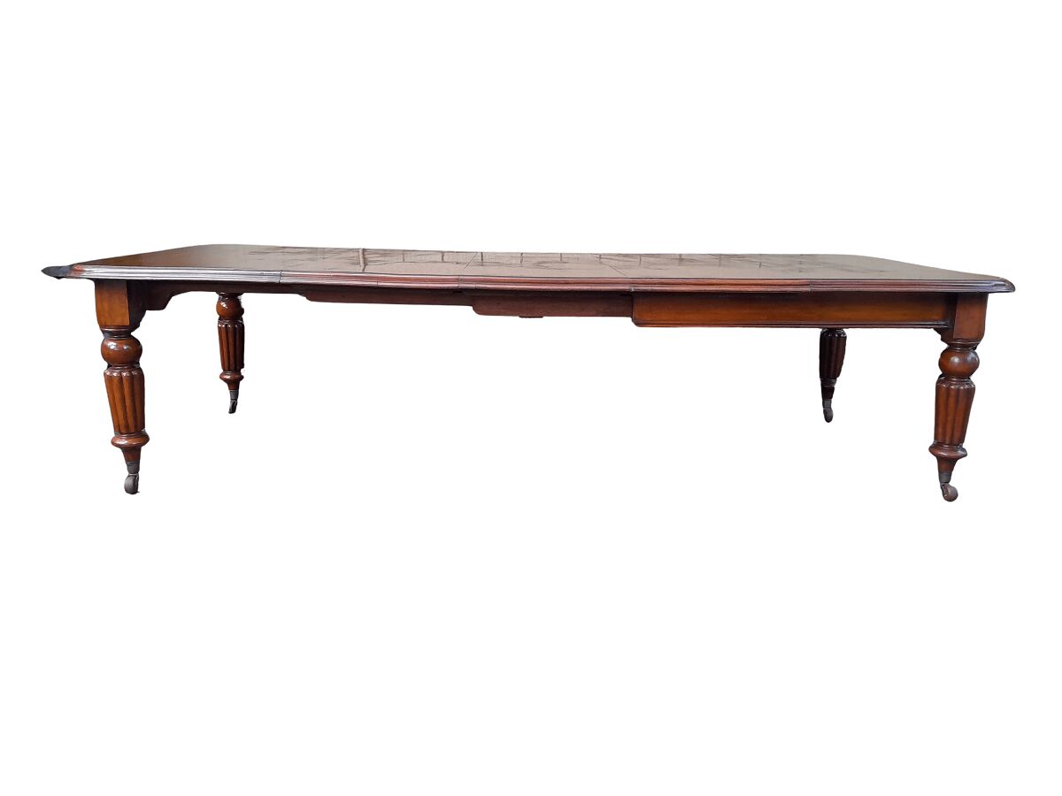 An Antique Edwardian Extending Dining Table with Heavily Carved Legs on Castors and with Crank Handle (10 Seater)