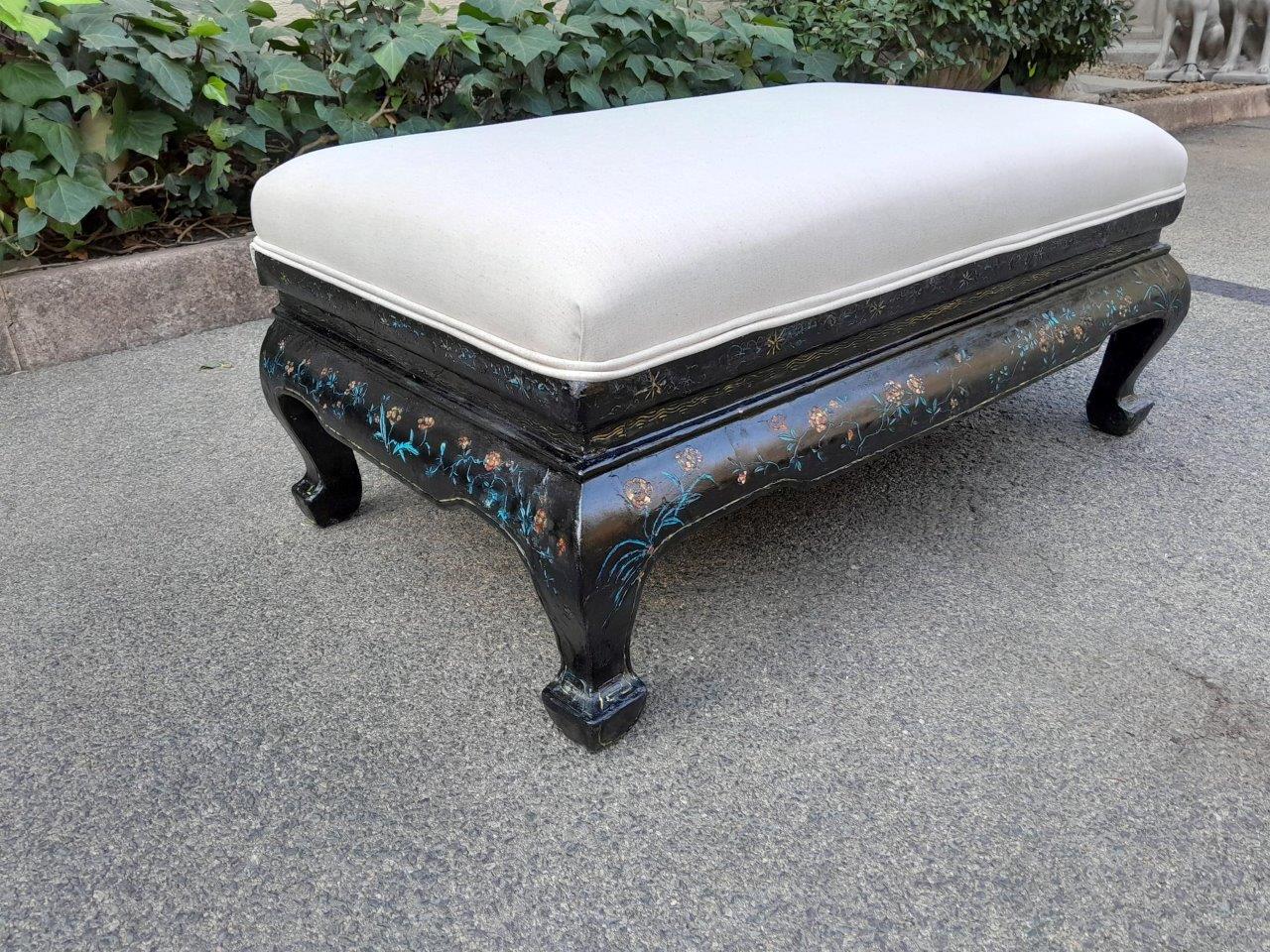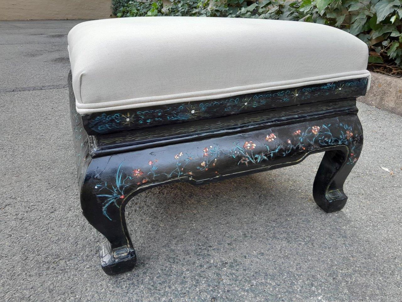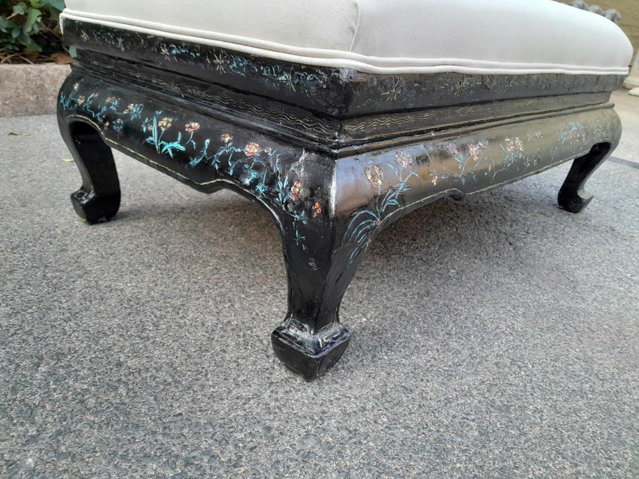 An Antique George Iii Circa 1800s Chinoiserie Wood Foot Stool