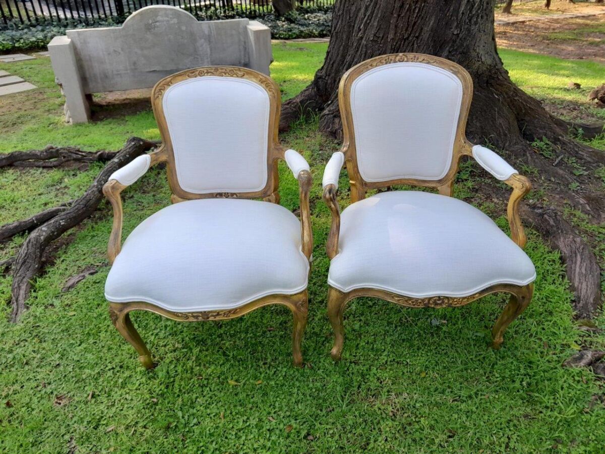 An Antique Pair Of Antique Walnut Tapestry Armchairs