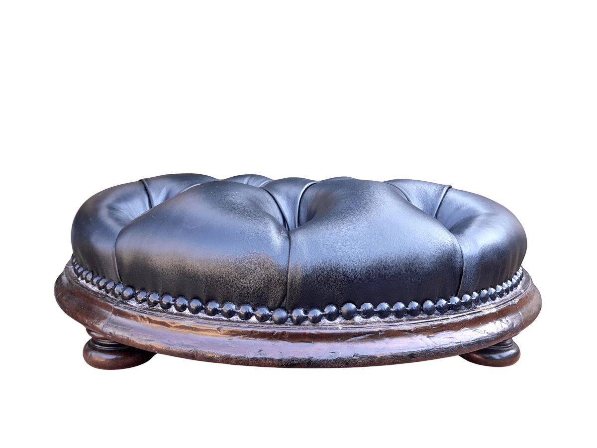 An Antique Victorian 20th Century / Circa 1880s Mahogany Foot Stool On Bun Feet In A Hand Gilded Finish
