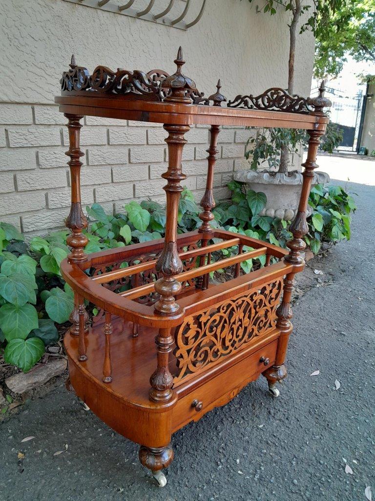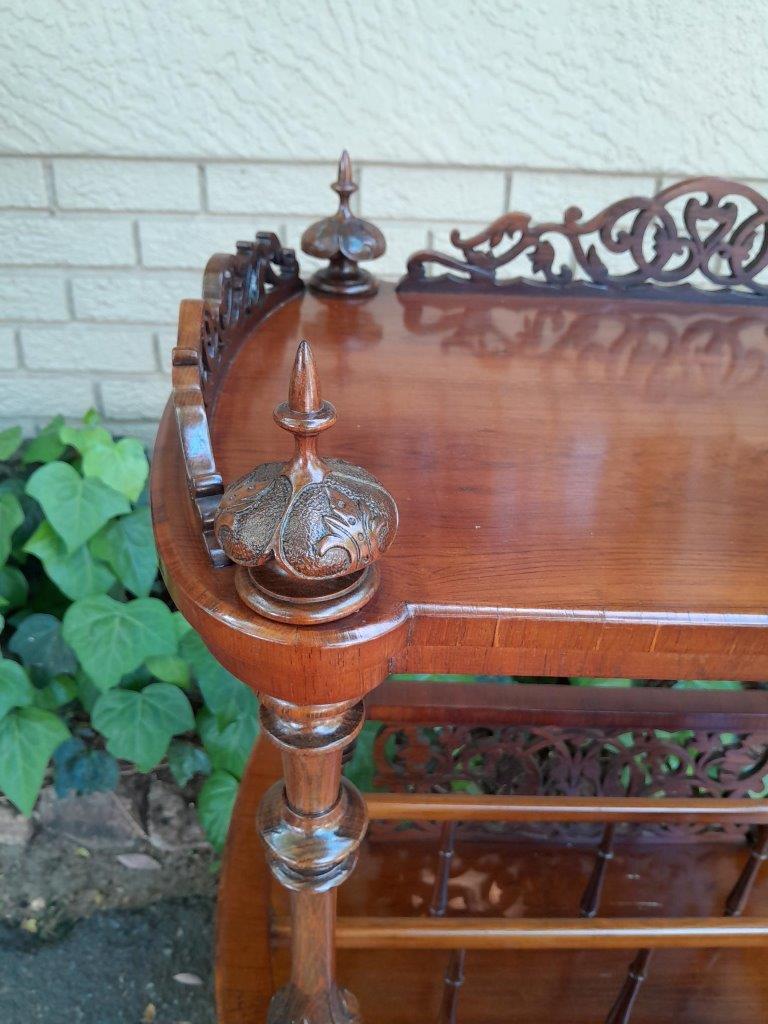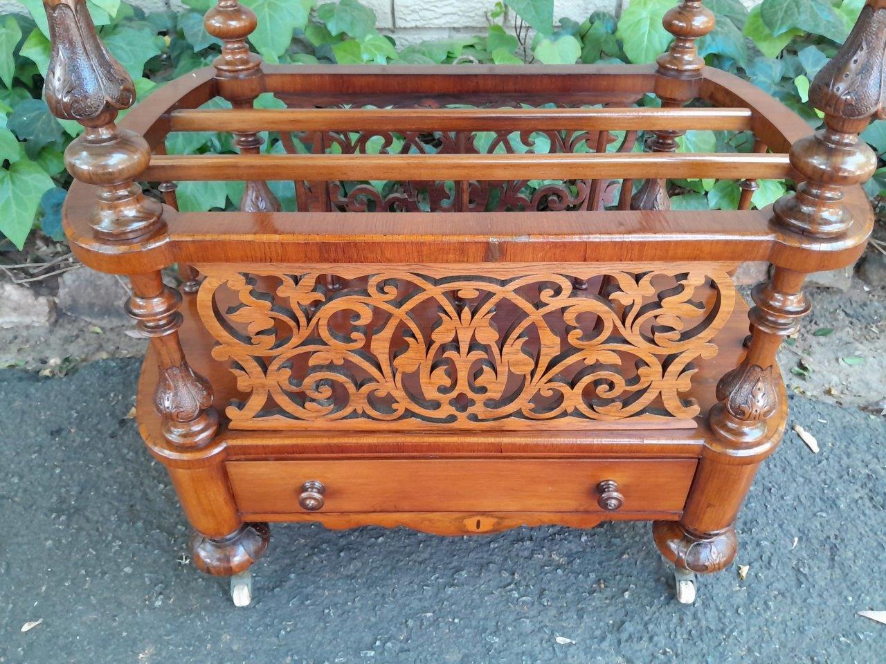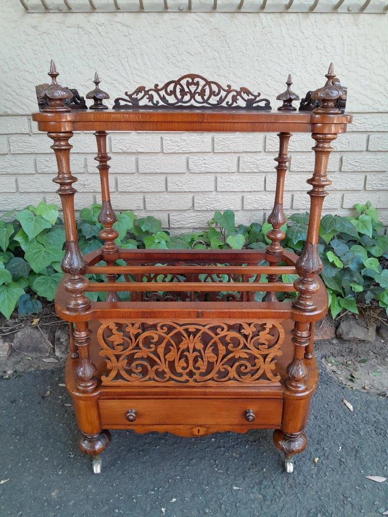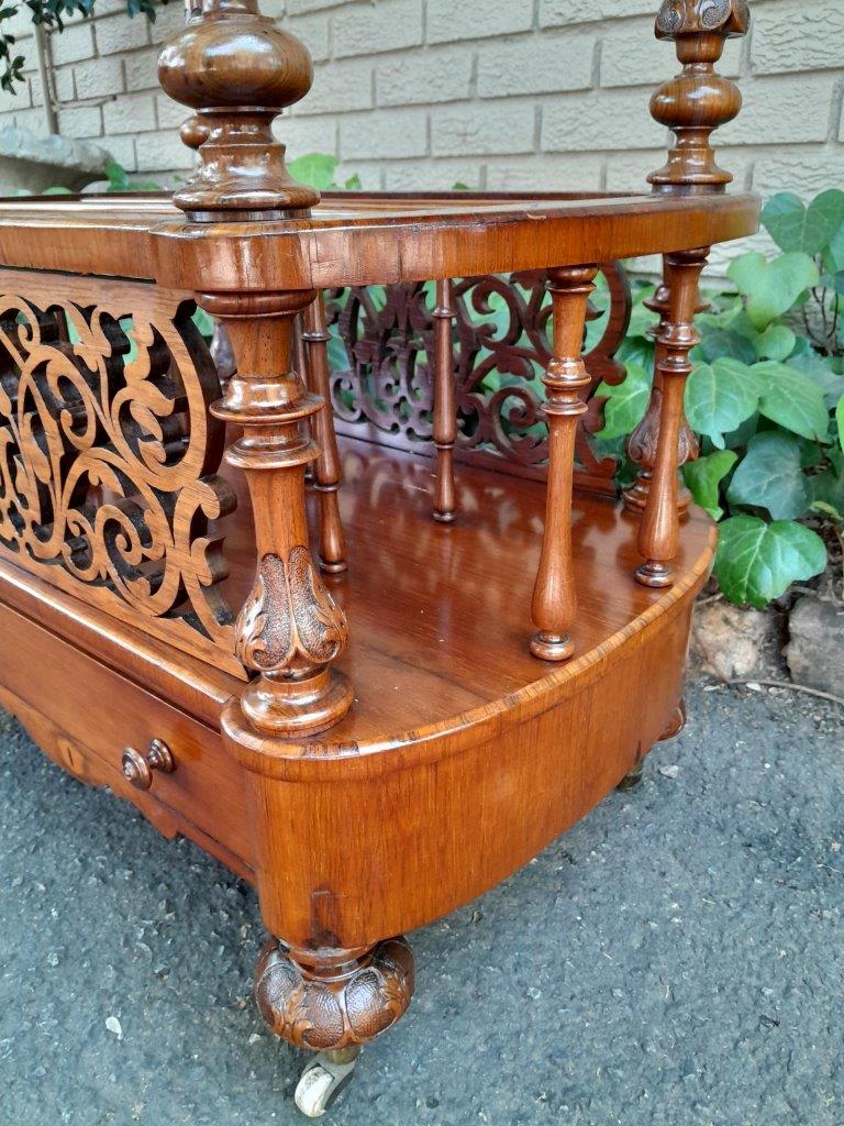 An Antique Victorian Circa 1800s Display Rosewood Canterbury With Drawer On Original Porcelain Castors
