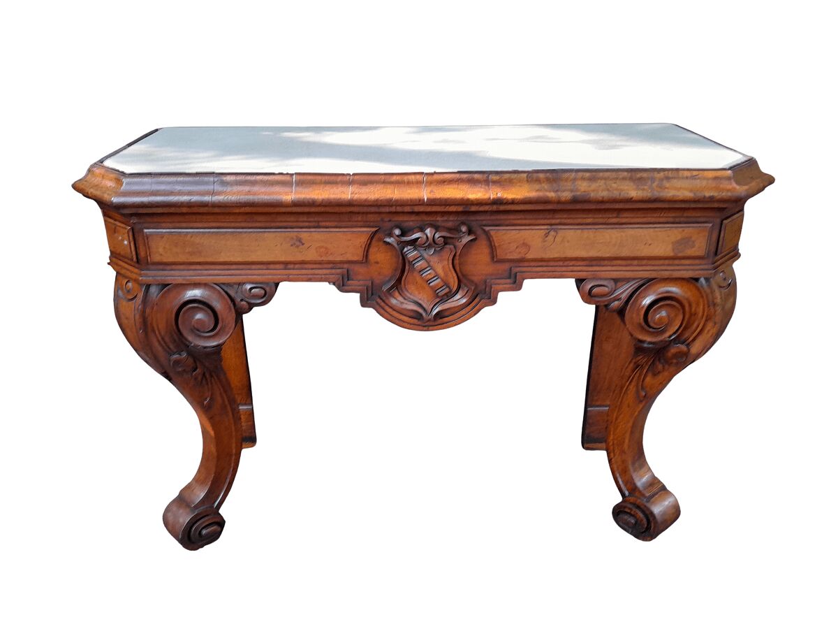 A Victorian Circa 1850’s Carved Rosewood Console/Drinks Table with Cream Marble Top