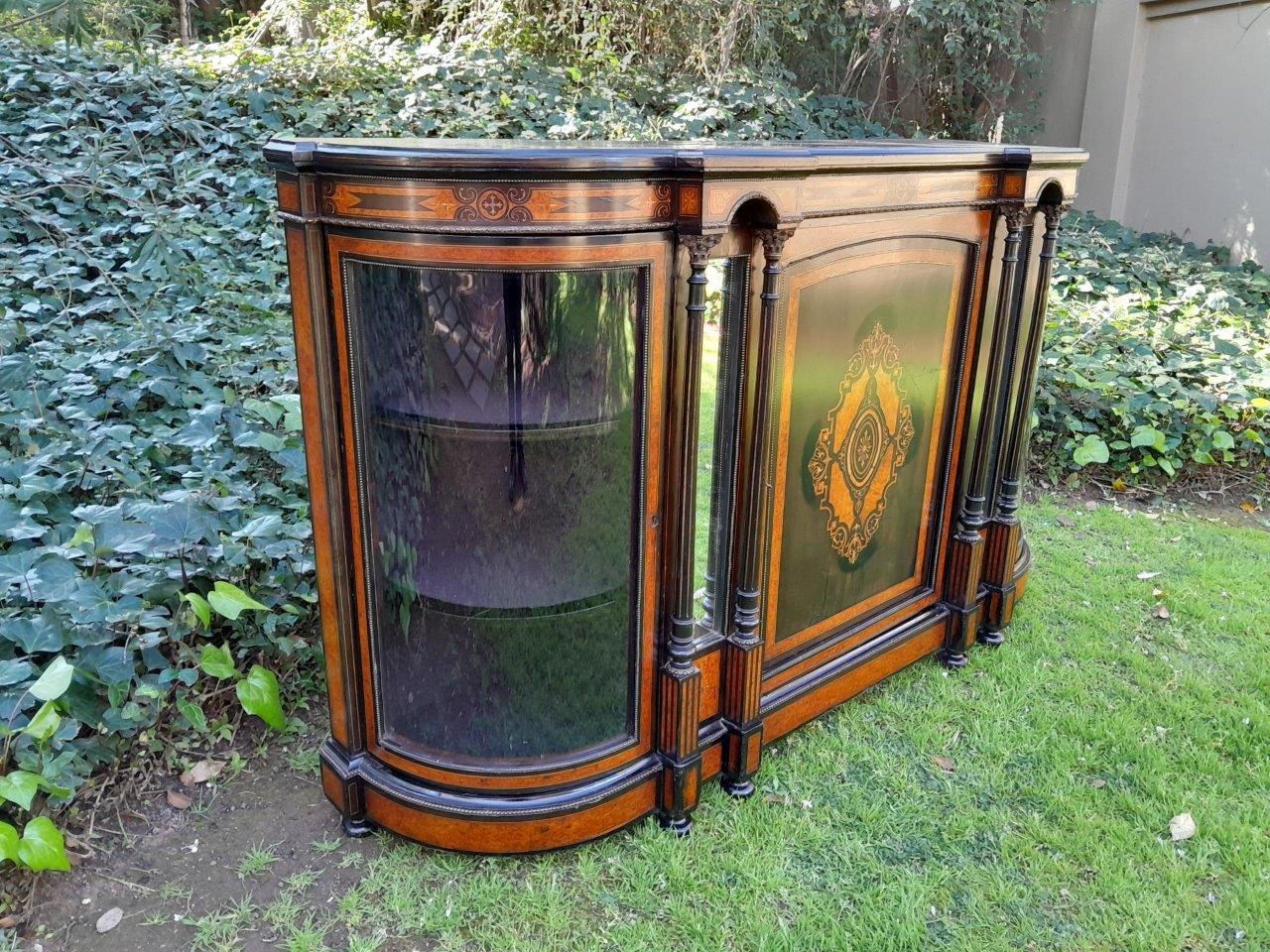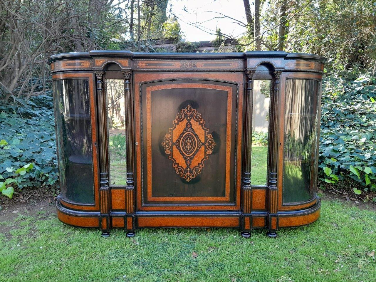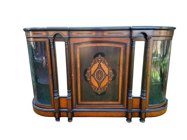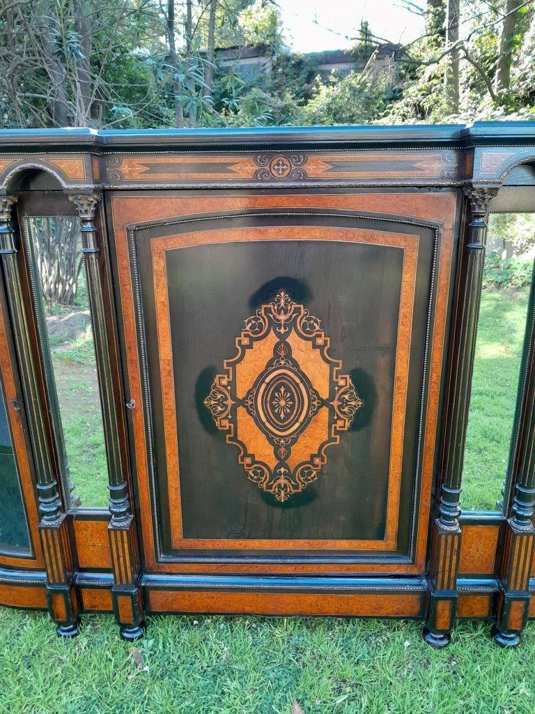 An Antique Victorian Circa 1880s Walnut, Ebonised And Inlaid Credenza / Drinks Table / Server / Display Cabinet