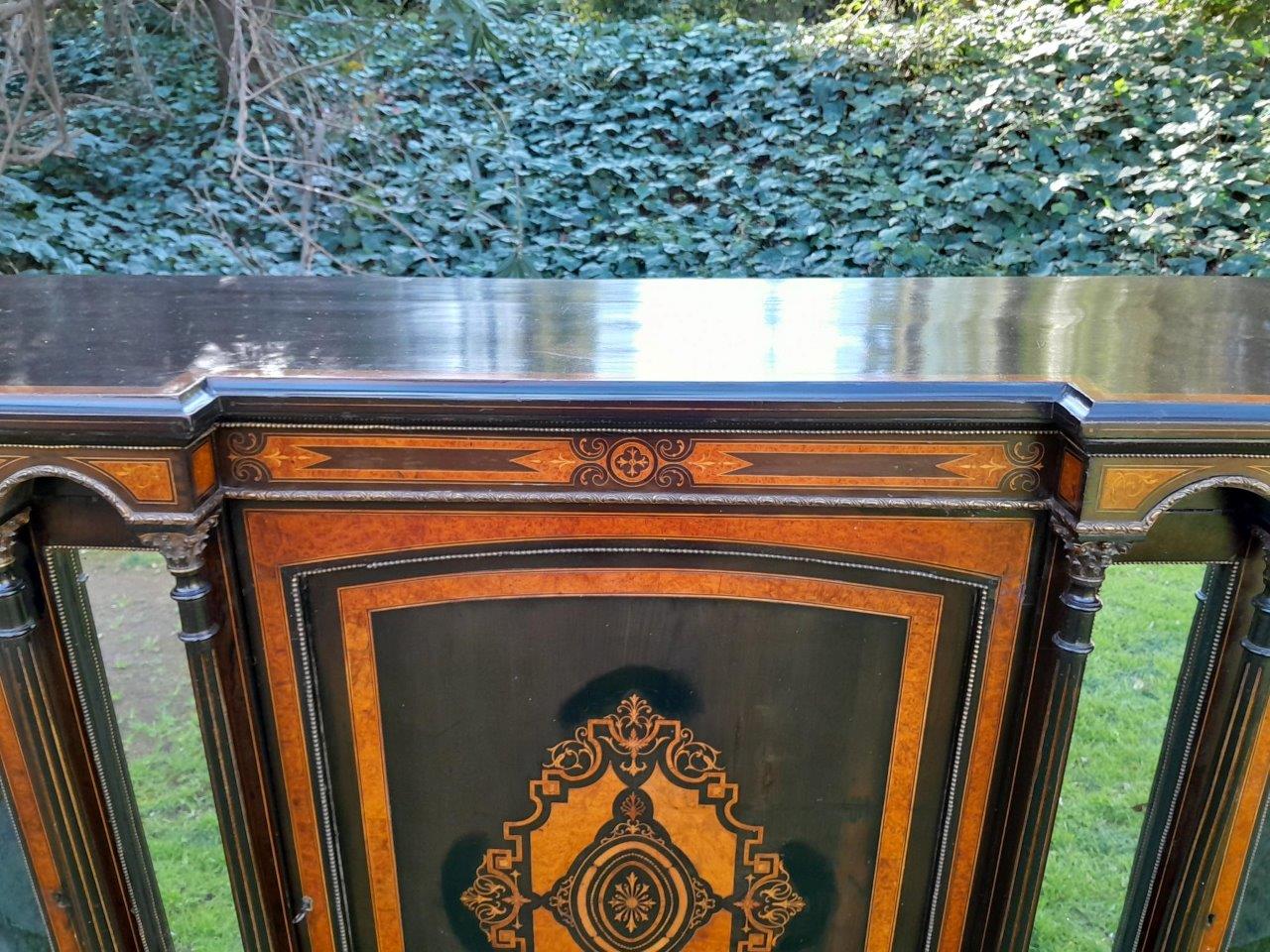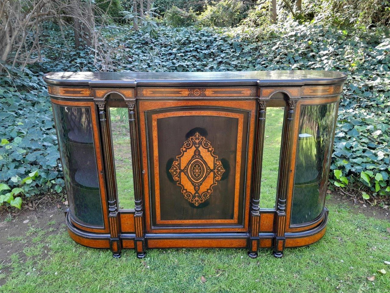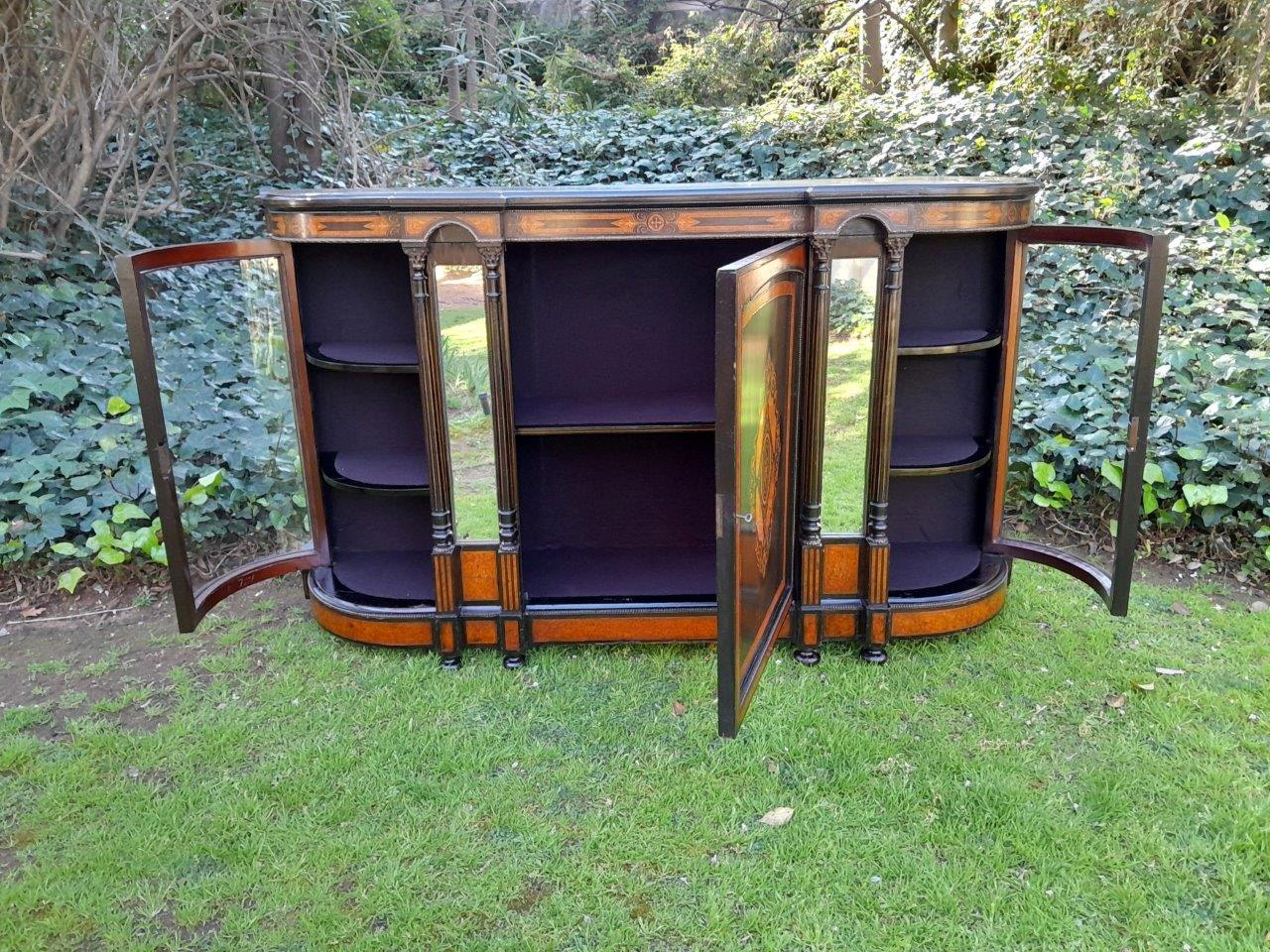 An Antique Victorian Circa 1880s Walnut, Ebonised And Inlaid Credenza / Drinks Table / Server / Display Cabinet