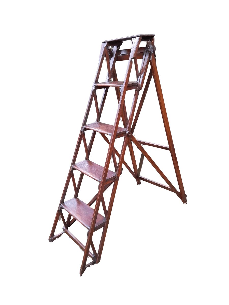 An Antique Victorian Circa 1890s Deal Wood Decorative / Library Ladder