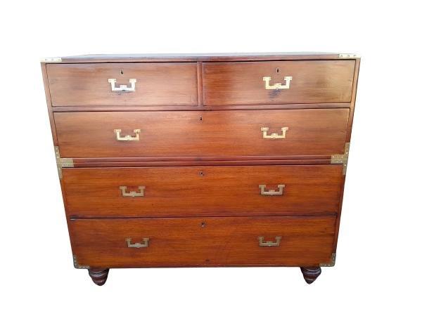 An Antique Victorian Mahogany Military Chest with Brass Hardware