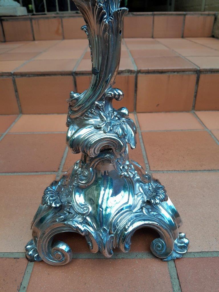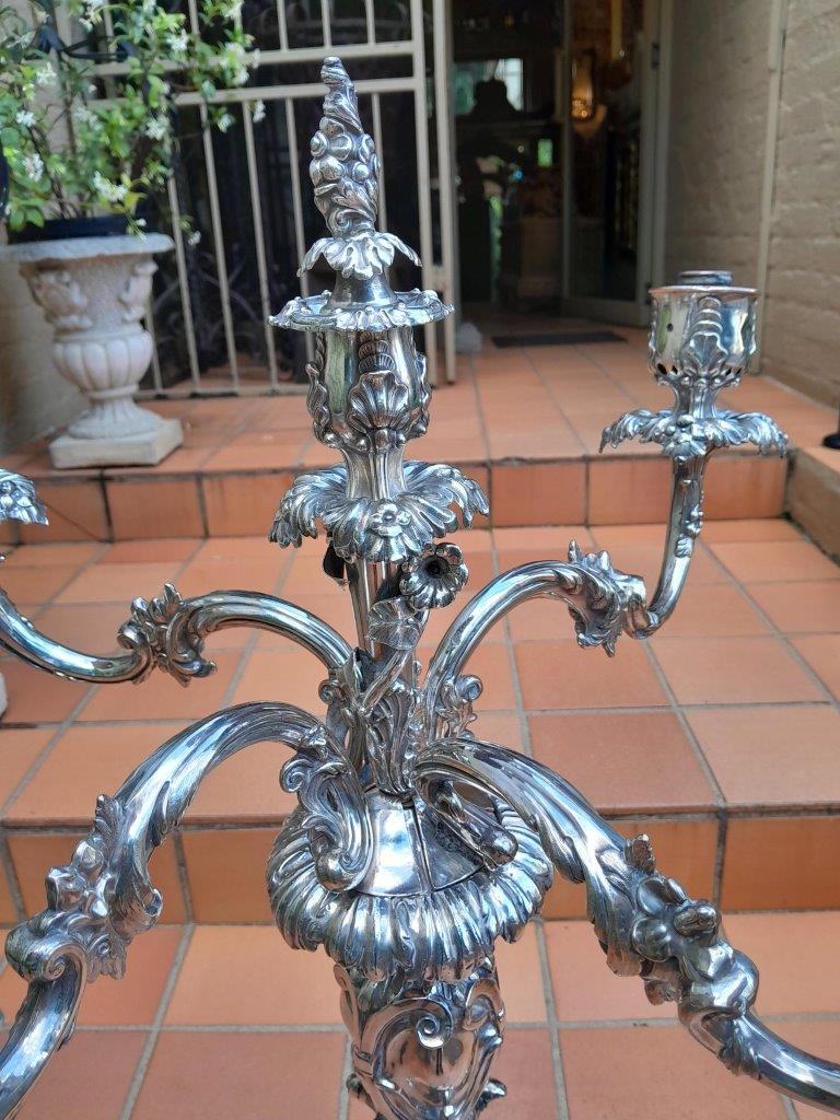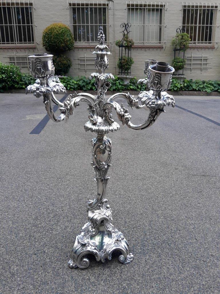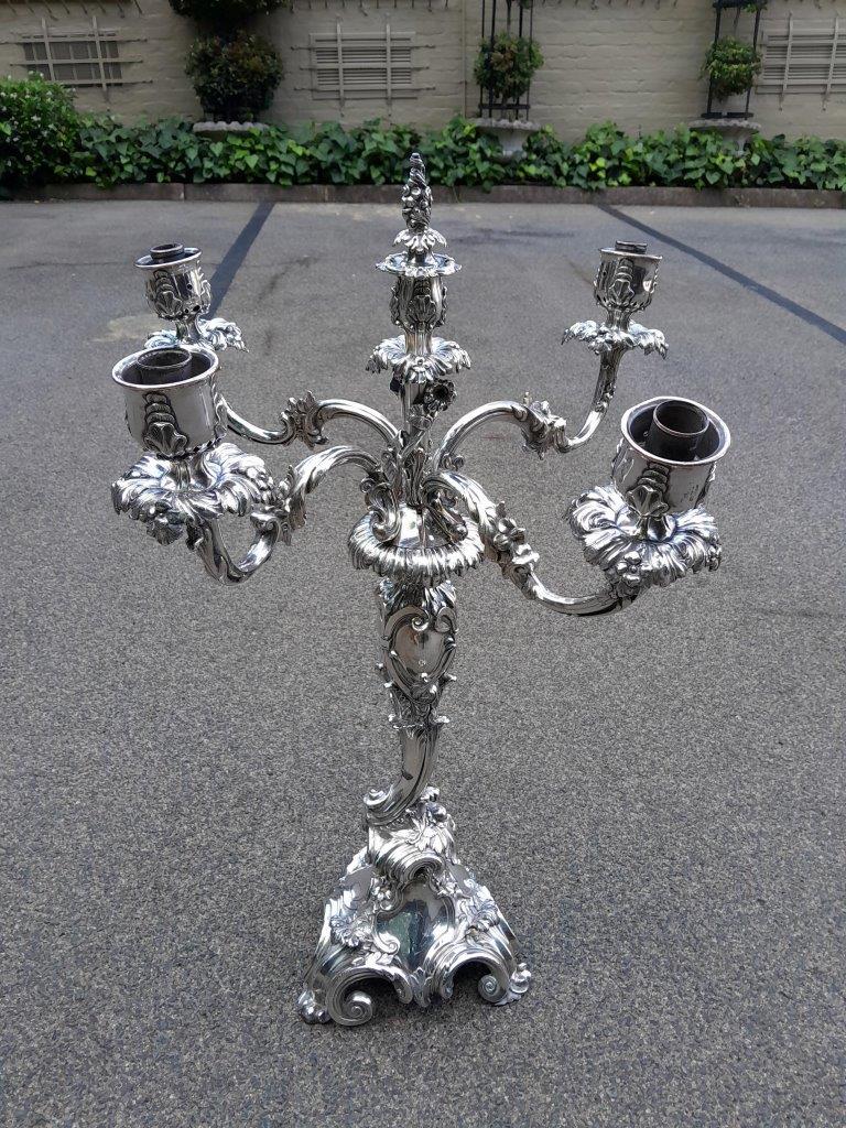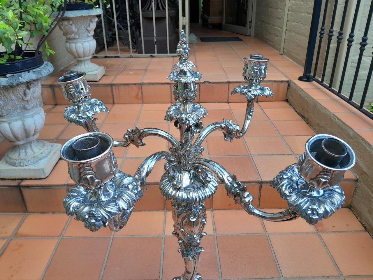An Antique Victorian Rococo Style Silver Plate Candelabra Of Large Proportions