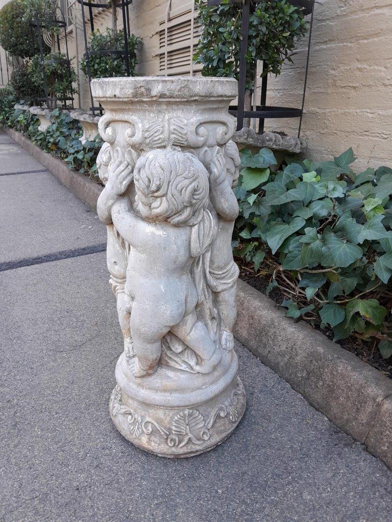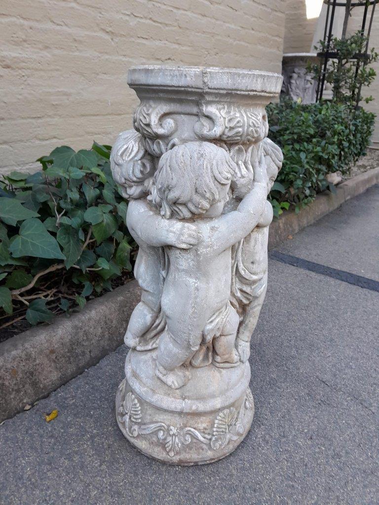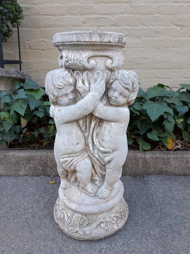 An Architectural And Decorative Concrete Cherub / Putti Column / Plinth / Stand With Patina