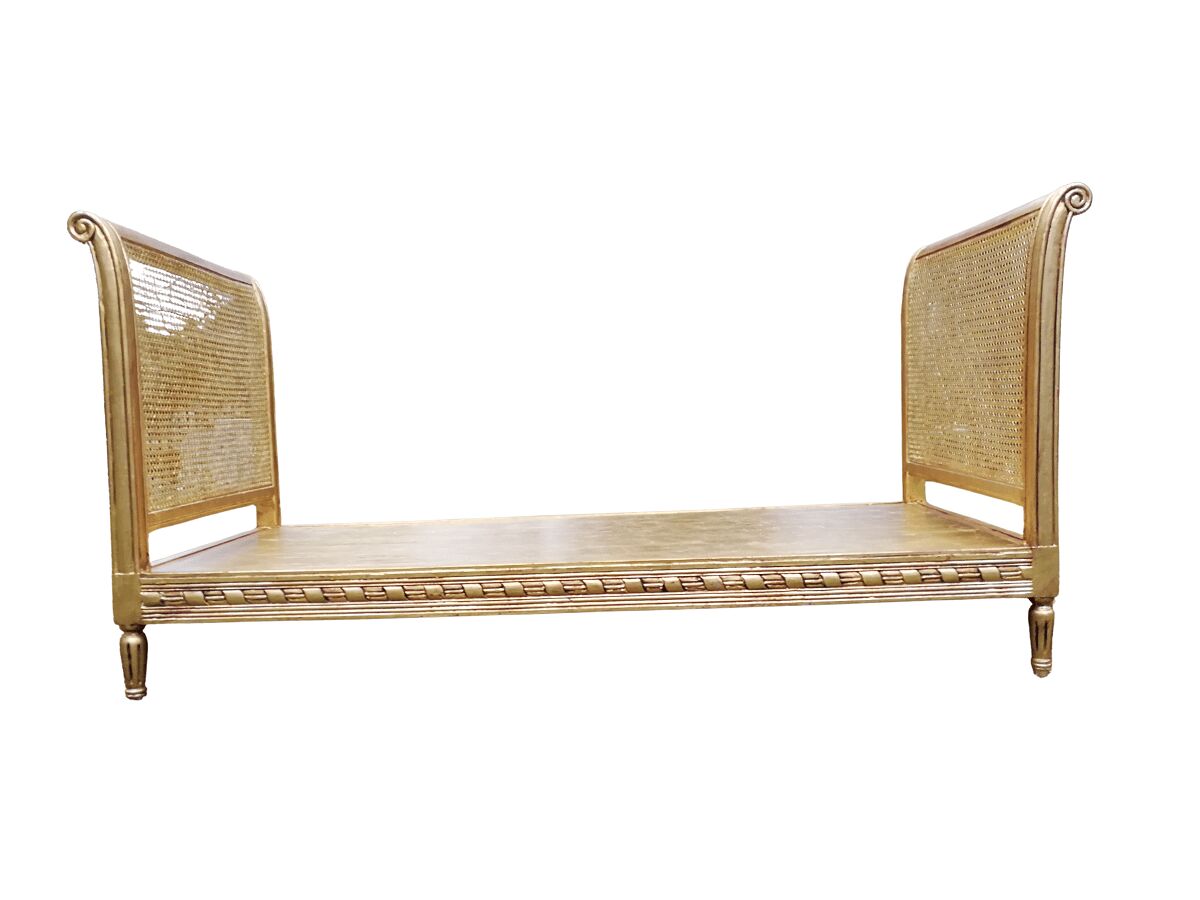 An Early 20th Century Antique French Style Carved Wooden And Hand Gilded Rattan Day Bed