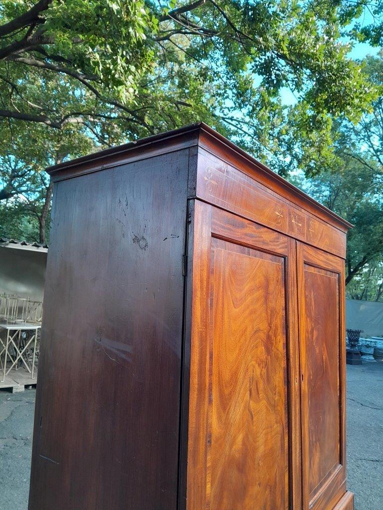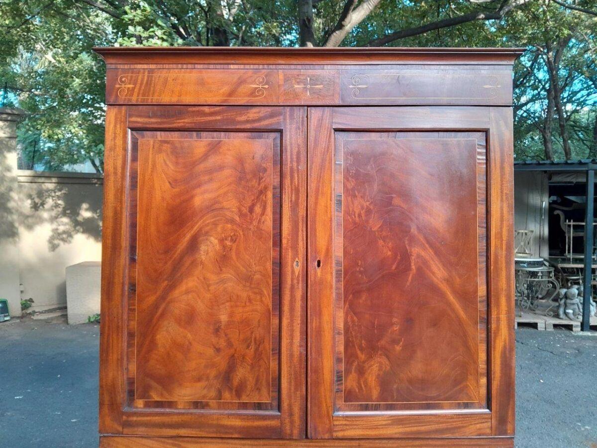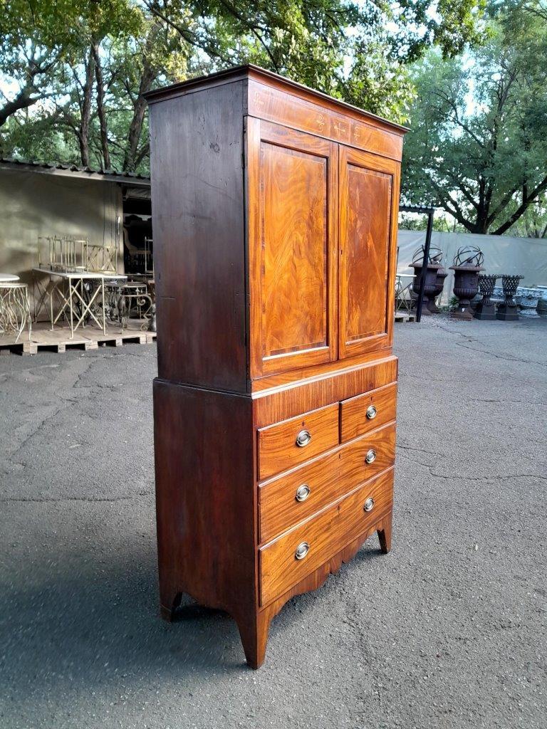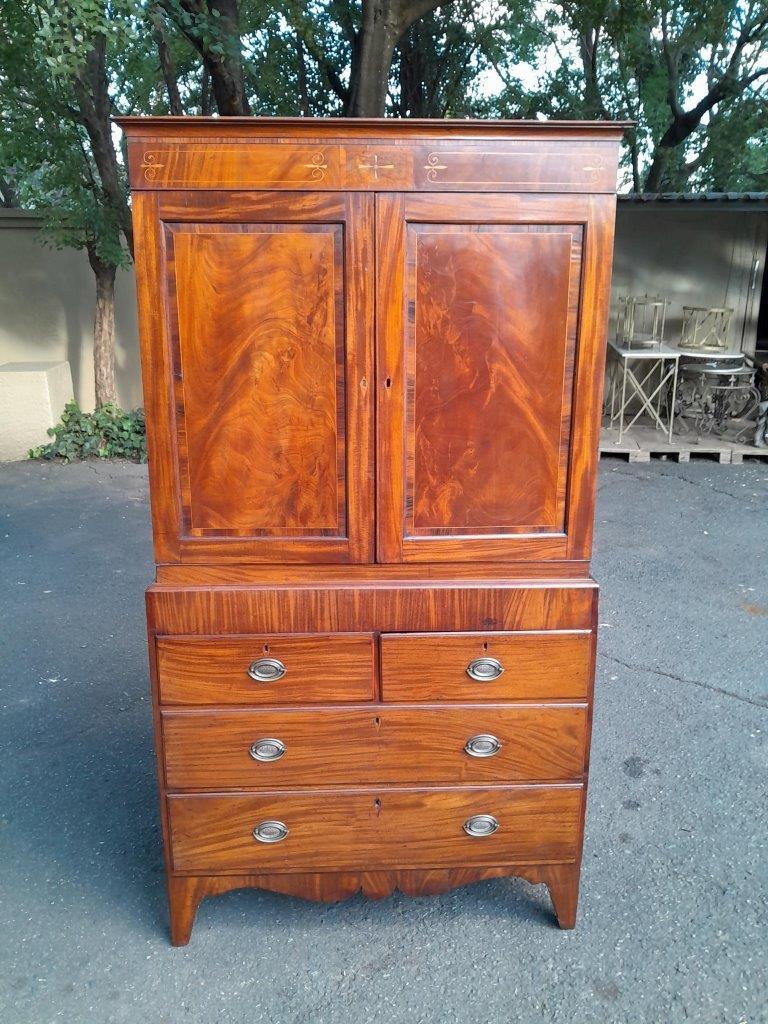 An Early 20th Century Circa 1920 Georgian Styled Flamme Mahogany Inlaid Linen Press with Shelves