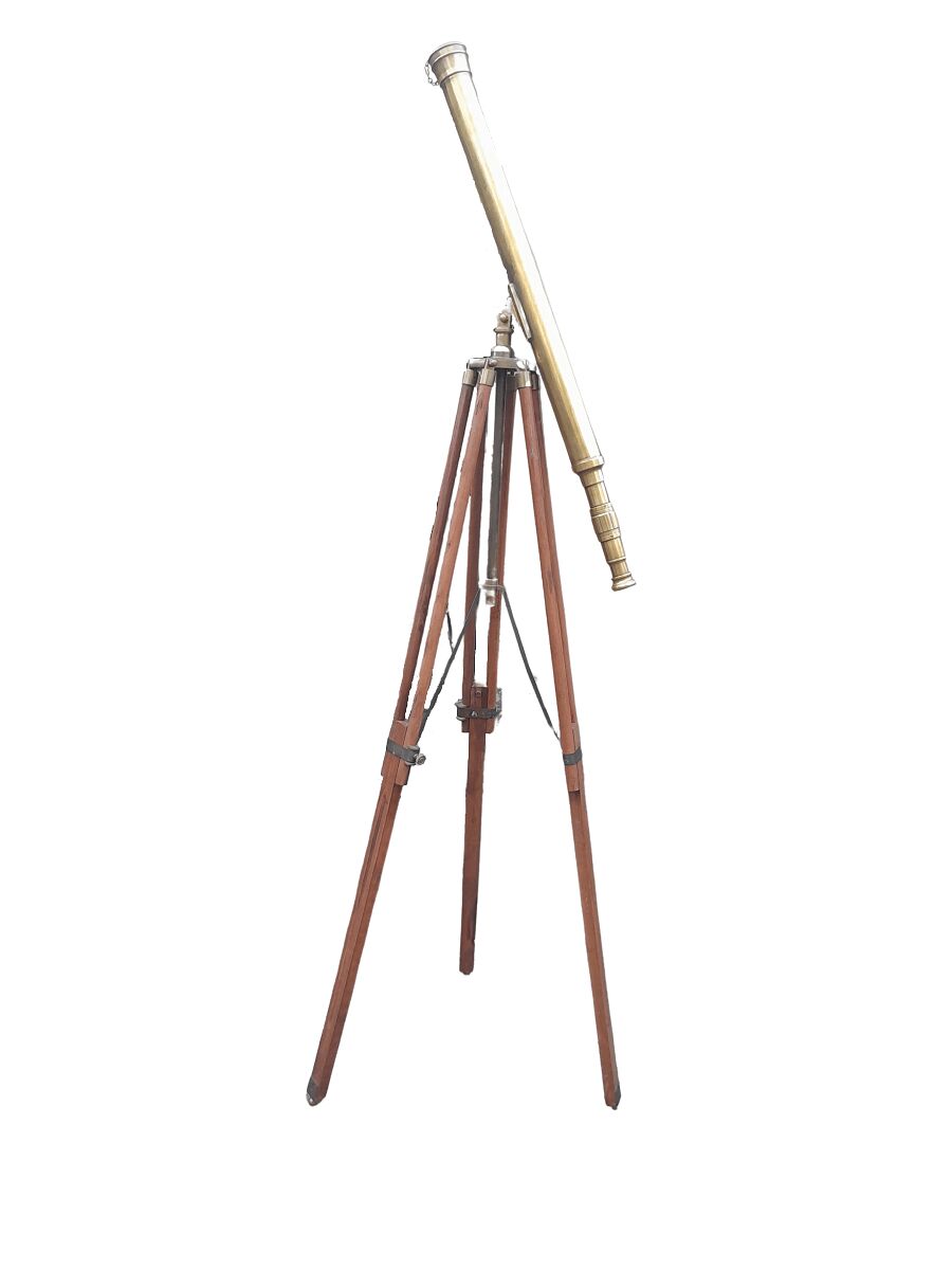 An Early 20th Century English British Ross Brass And Teak Refractor Telescope On Brass And Teak And Brass Base