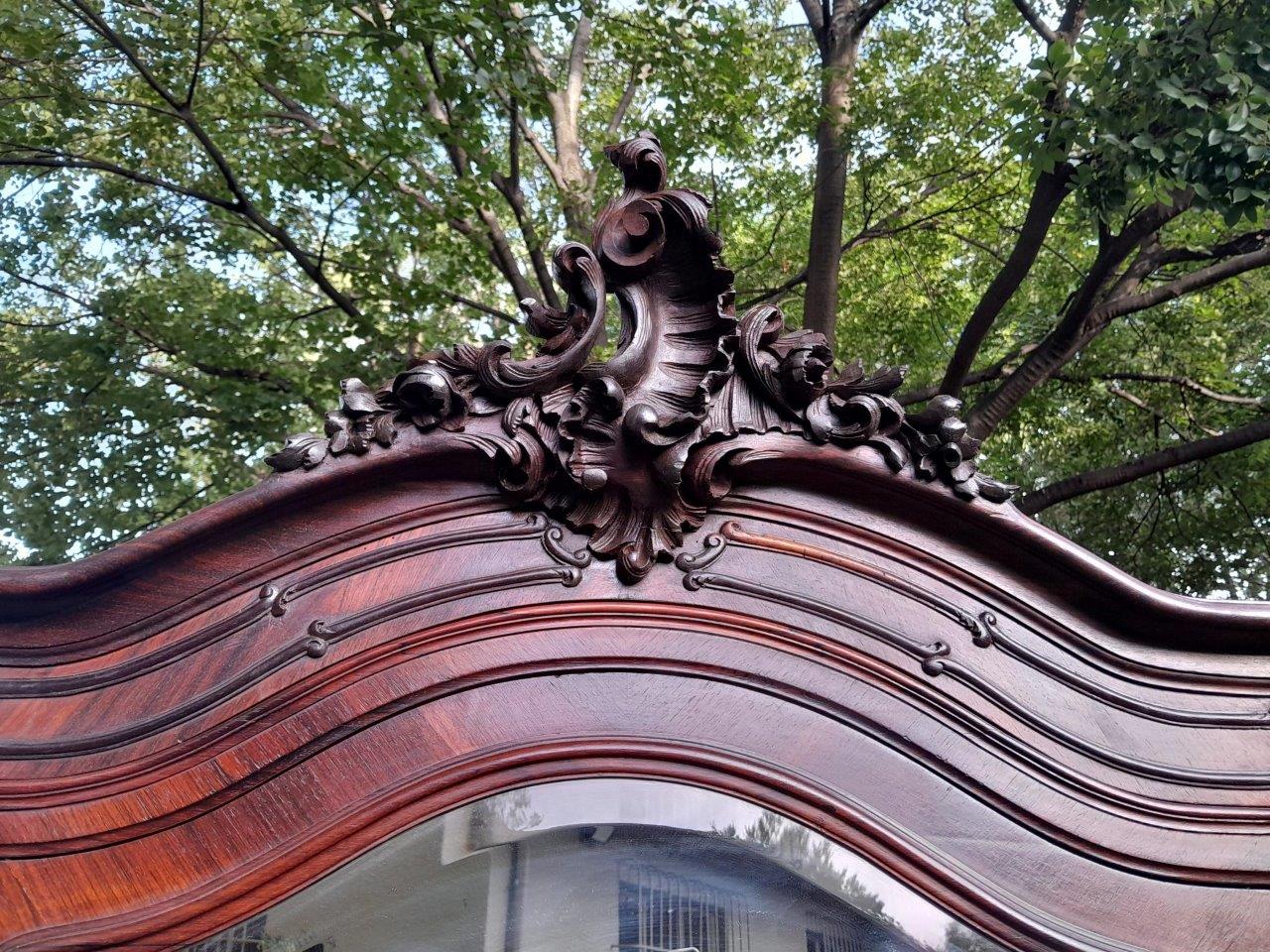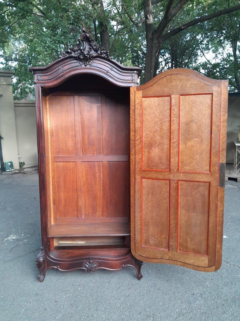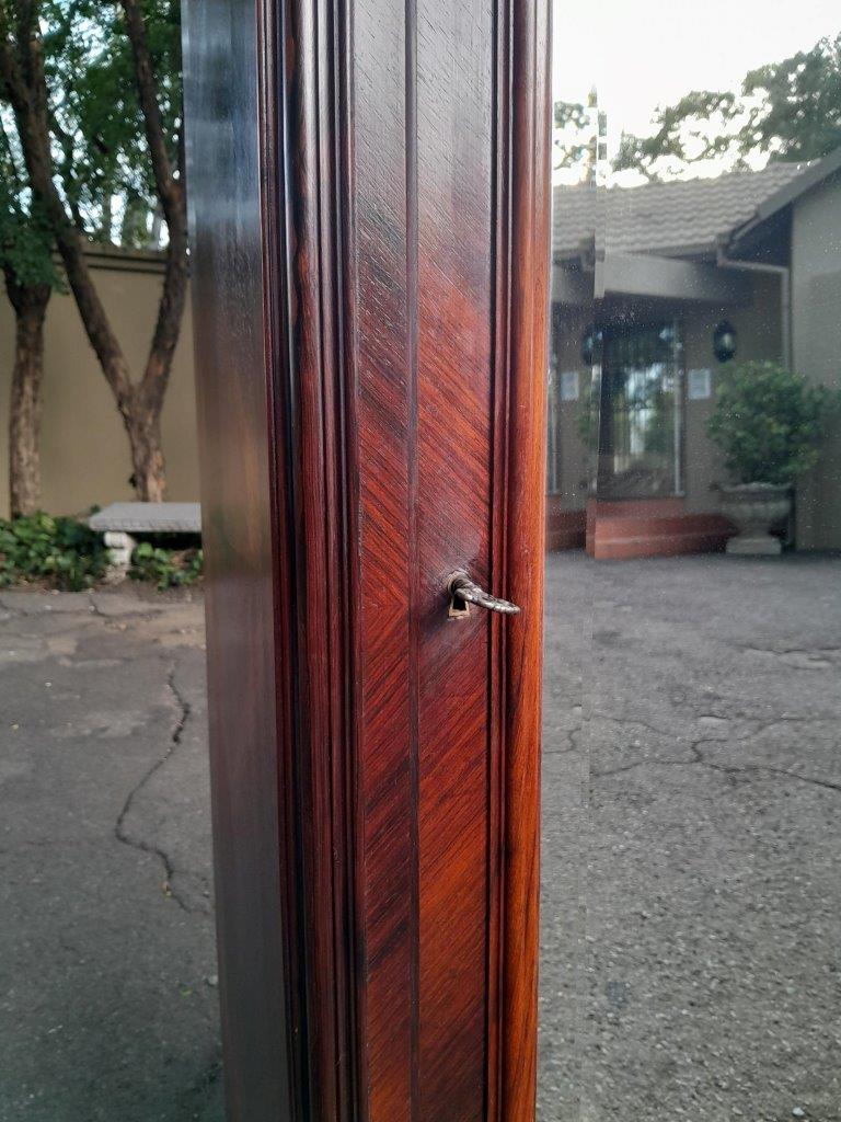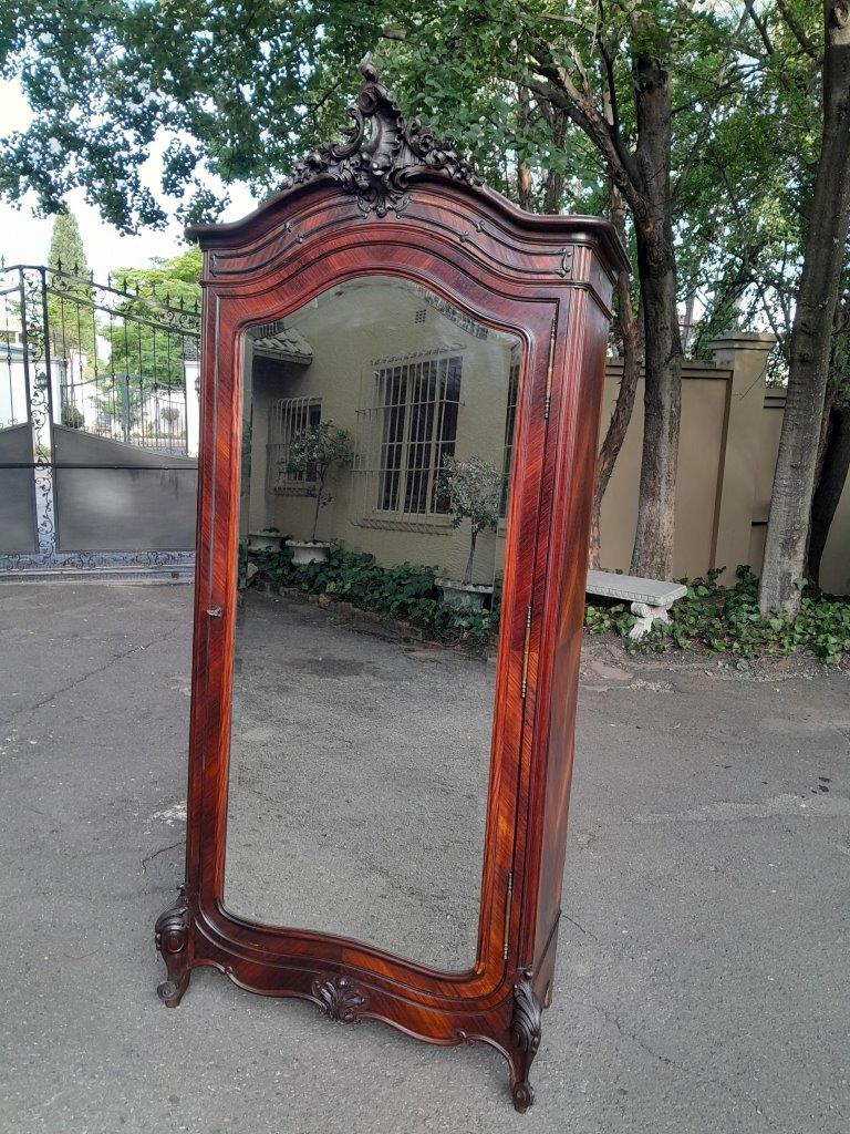 An Early 20th Century French Carved Rosewood Armoire with Bevelled Mirror and Lock and Key