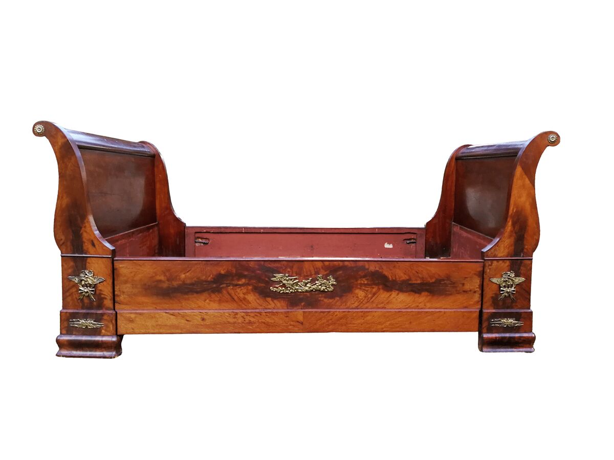 An Early 20th Century French Mahogany Lit Bateau Daybed/Bed With Gilt-Brass And Castors