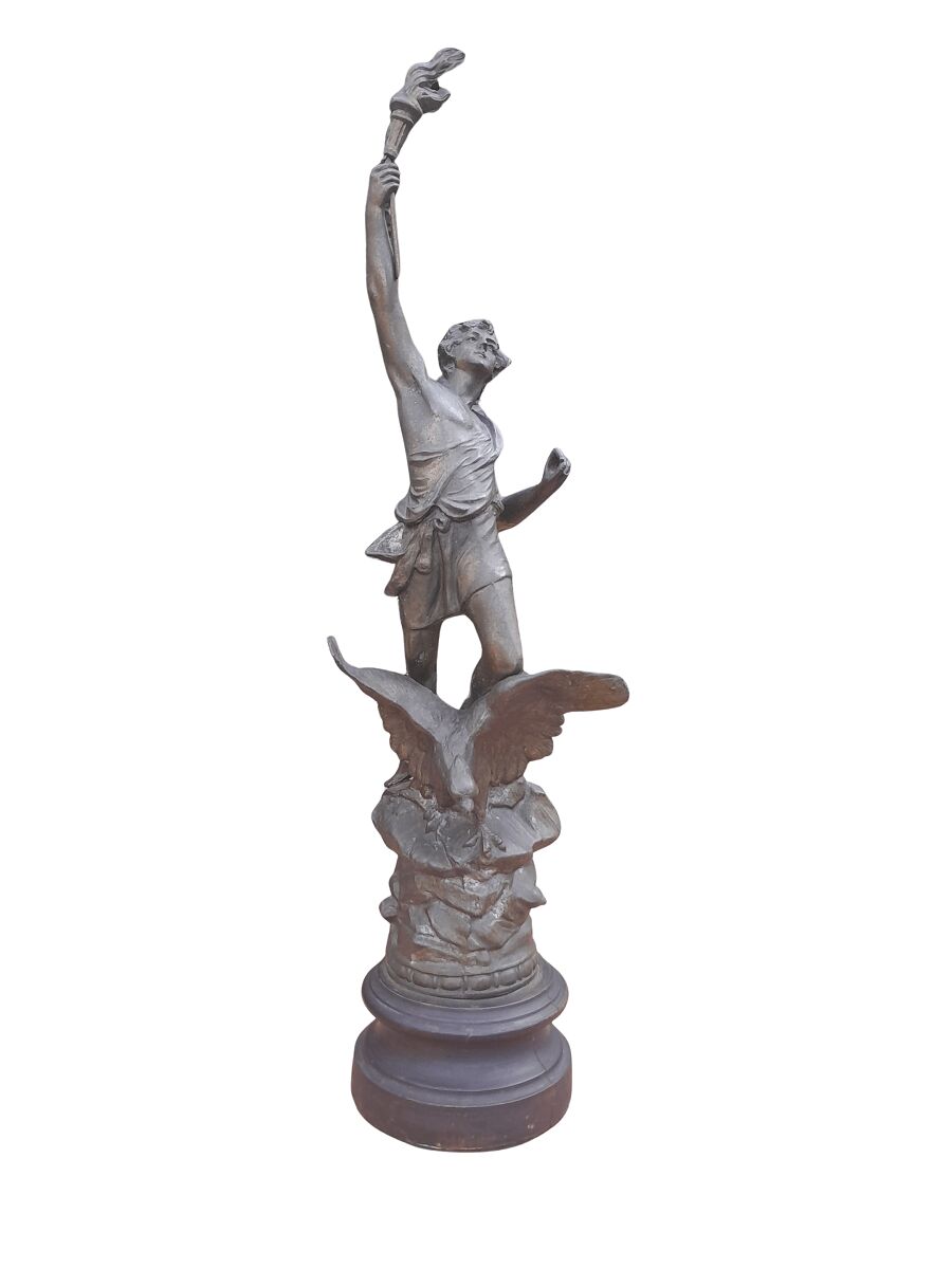 An Early 20th Century French Patinated Spelter Figurine on Wooden Base