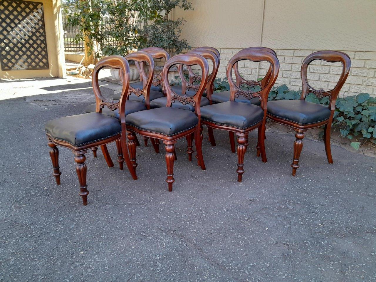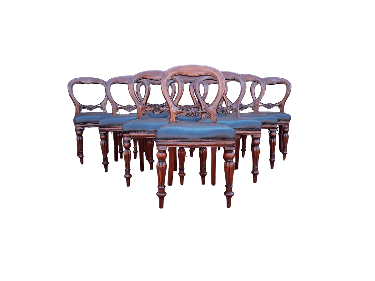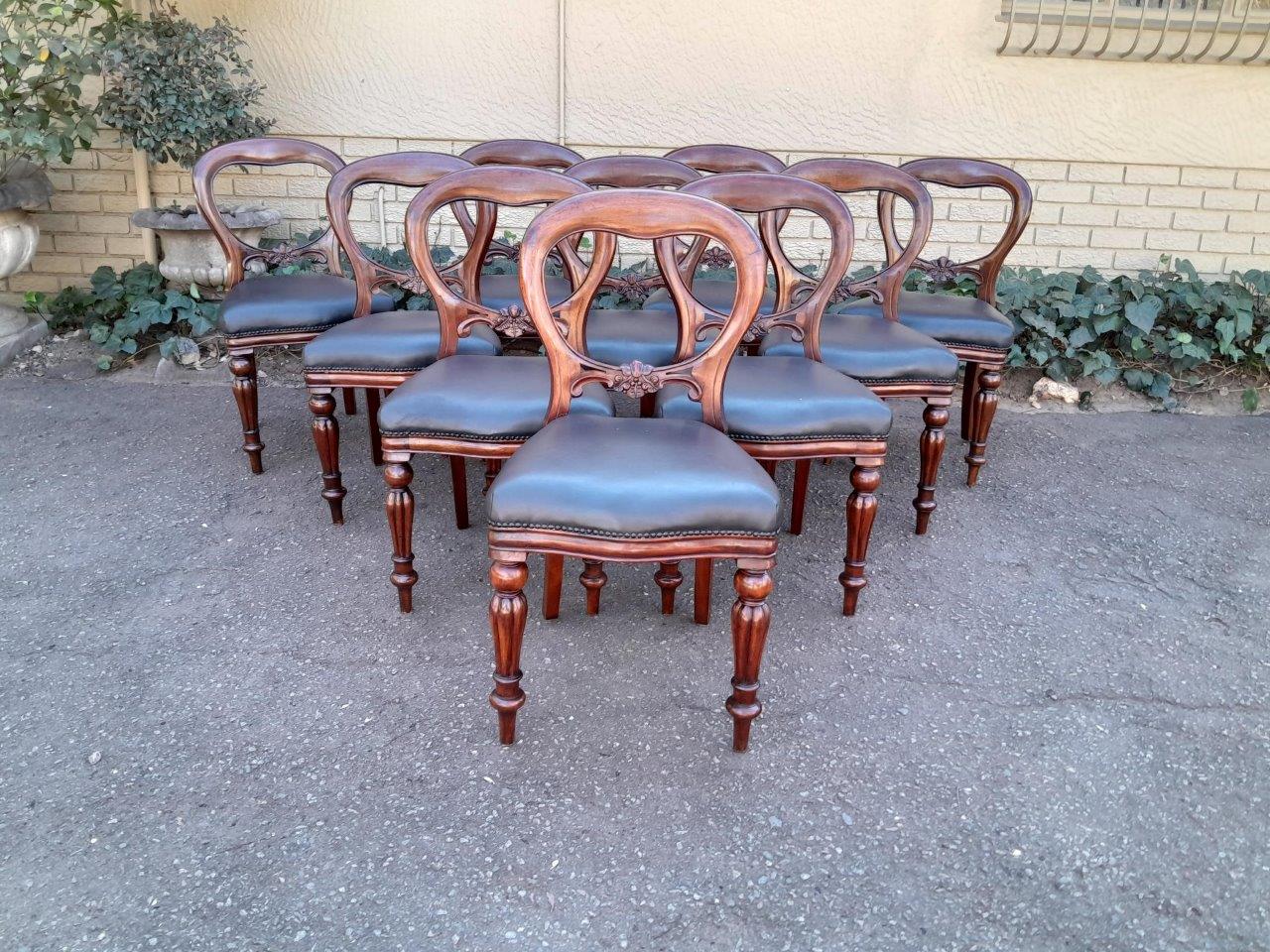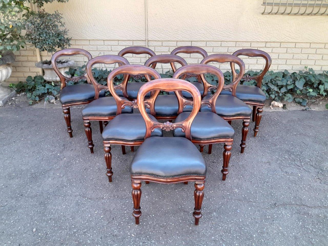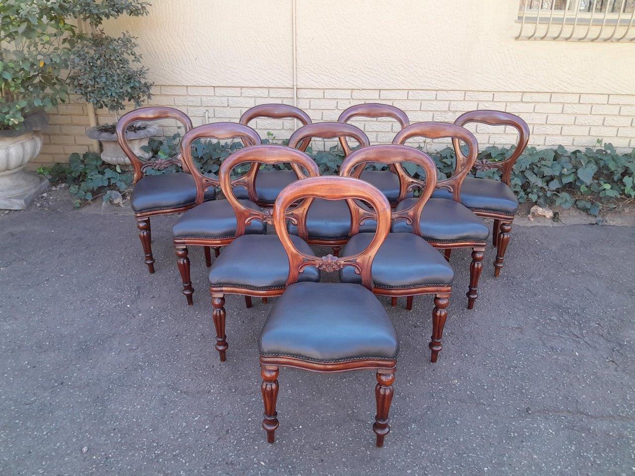 An Early 20th Century Victorian Set Of Ten Bustle Back Chairs Upholstered In Deep Button Leather