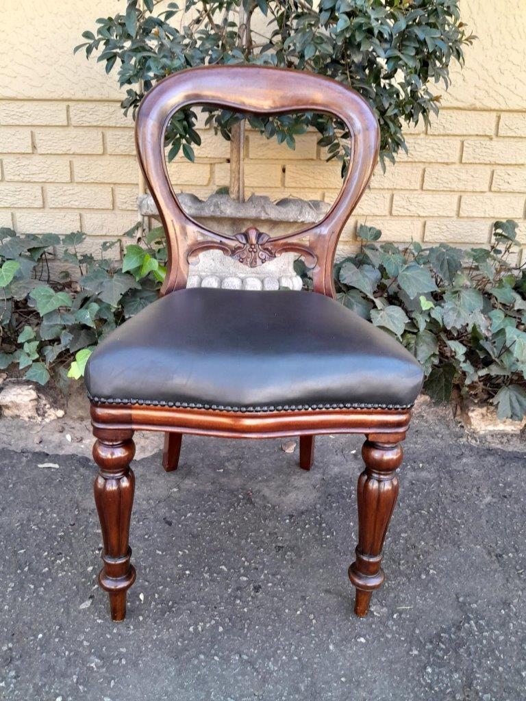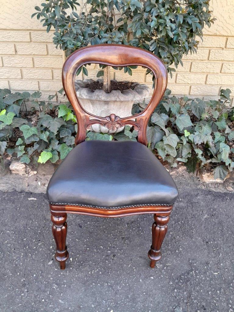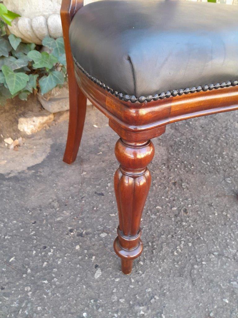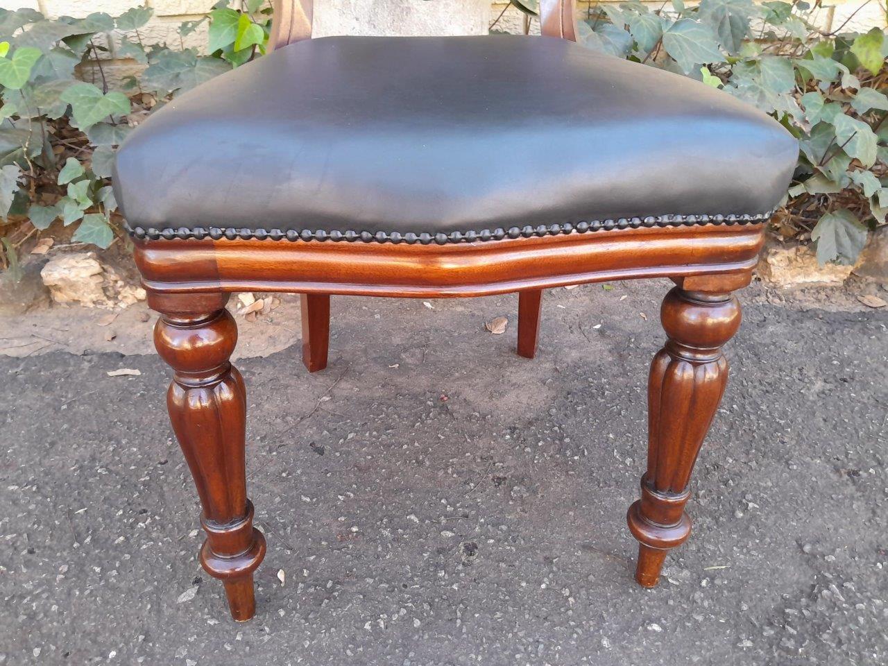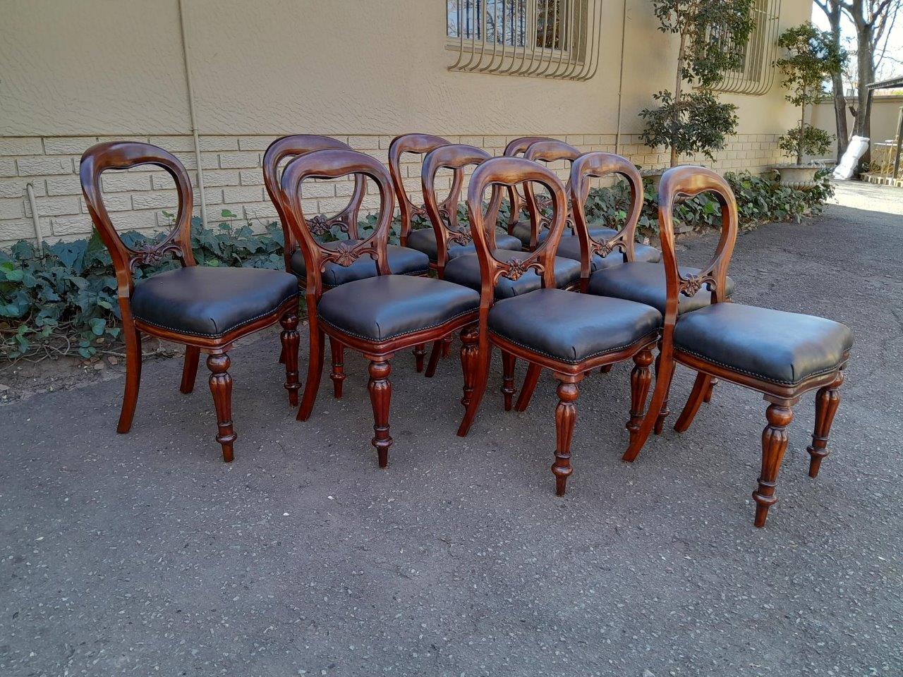 An Early 20th Century Victorian Set Of Ten Bustle Back Chairs Upholstered In Deep Button Leather