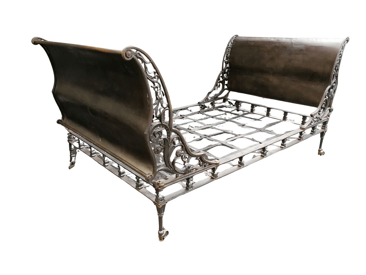 An Extremely Rare Mid 19th Century Circa 1850, French Napoleon Metal Daybed With Four Casters