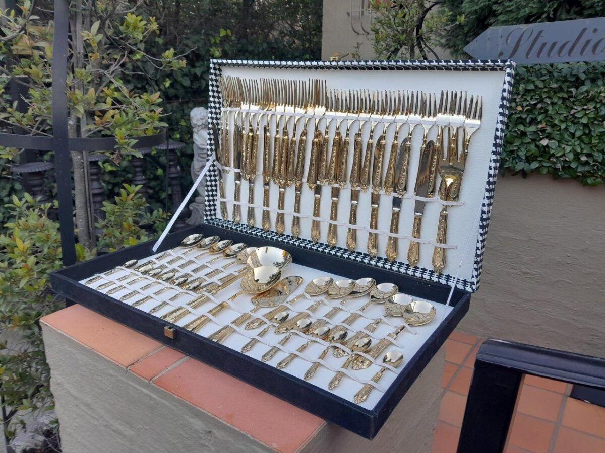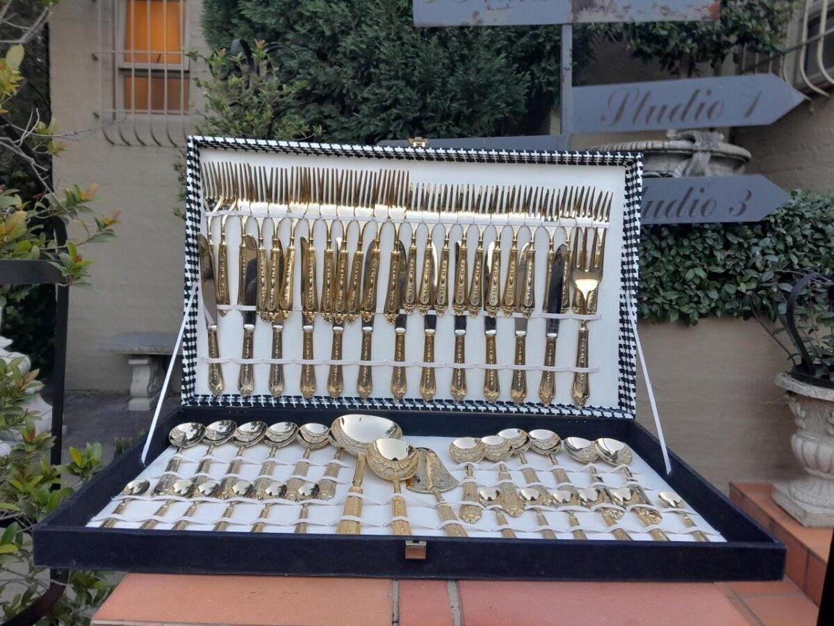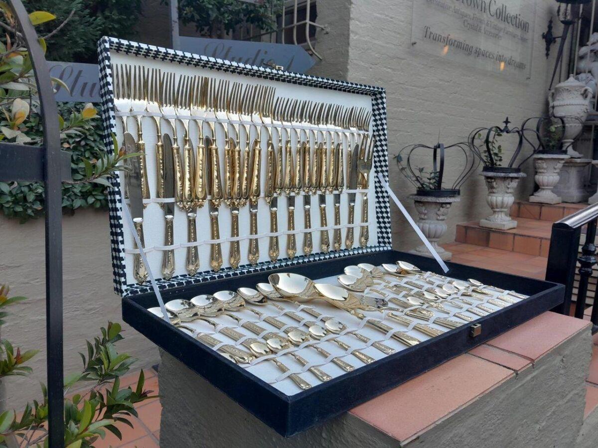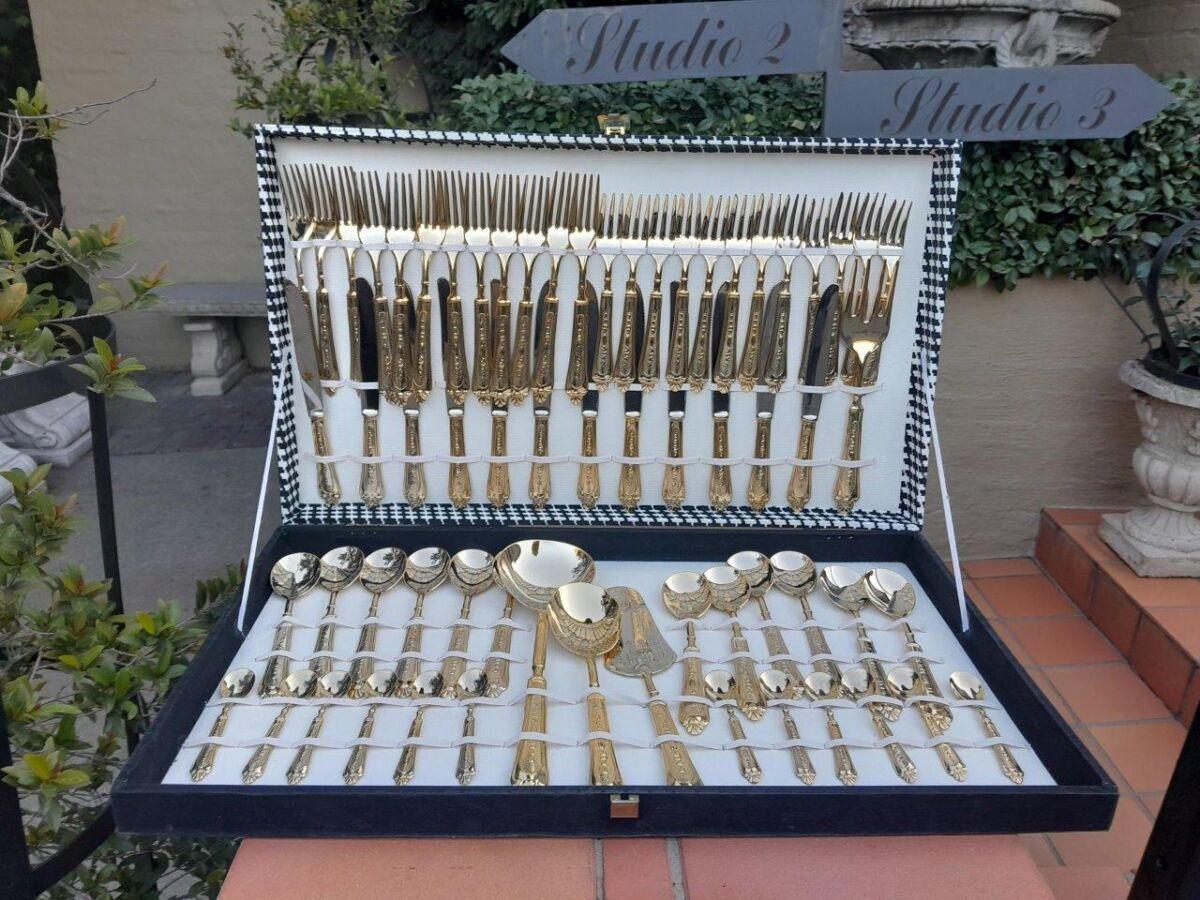 An Italian 24kt Gold Plated Cutlery Set in Canteen