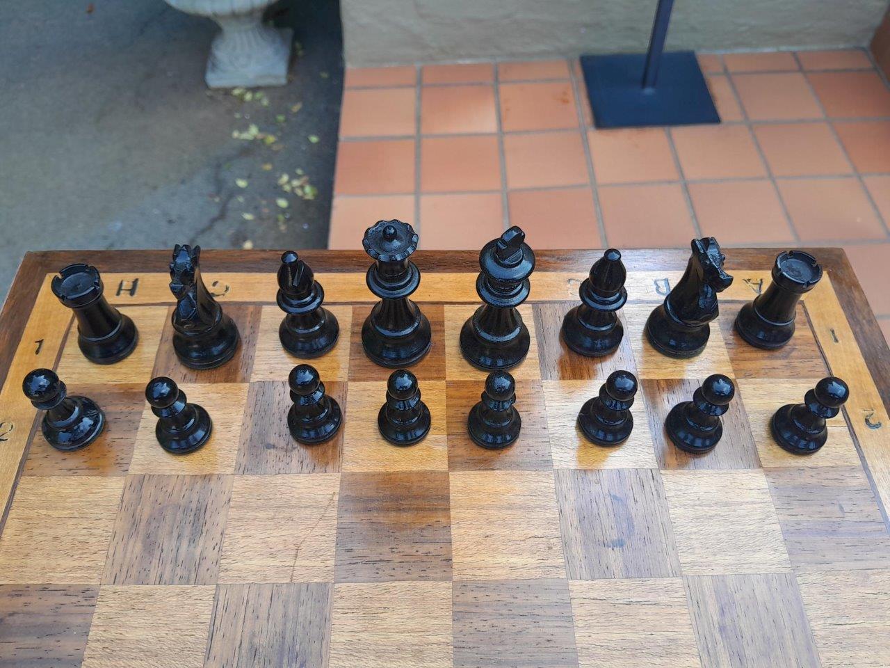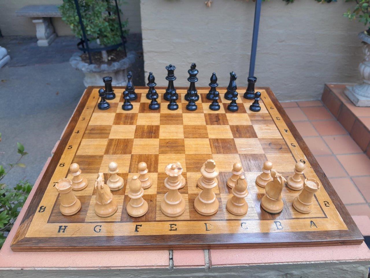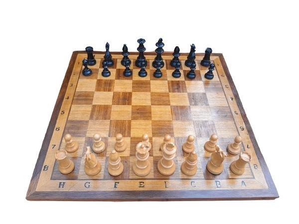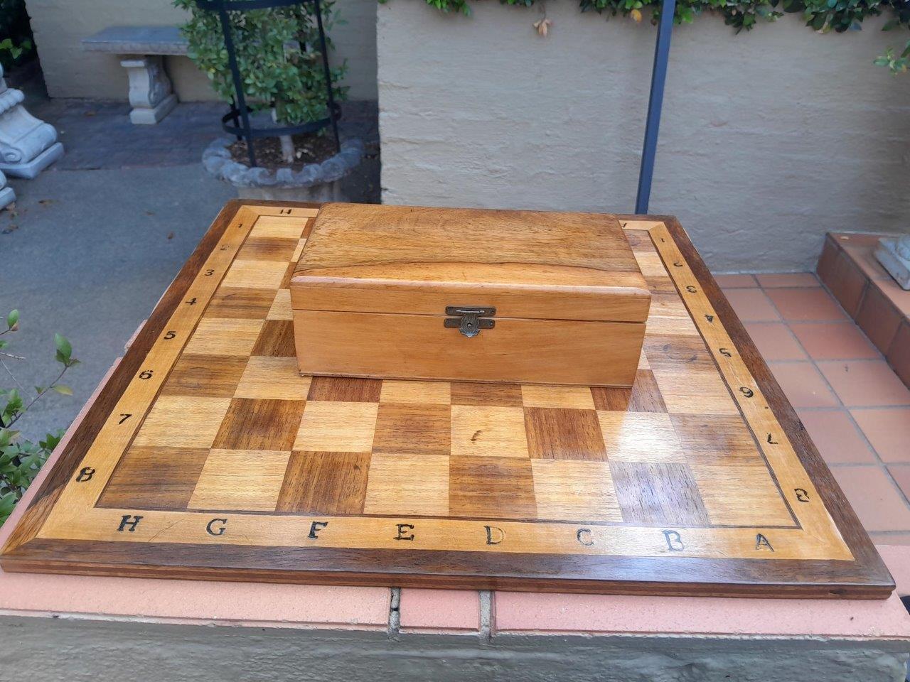 An Olive Wood Chess Board With Carved Chess Pieces In A Box