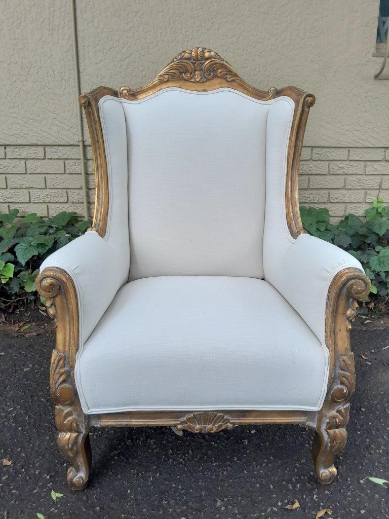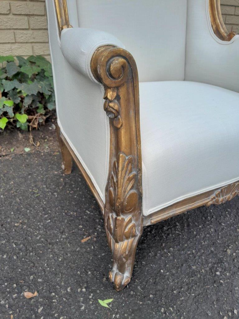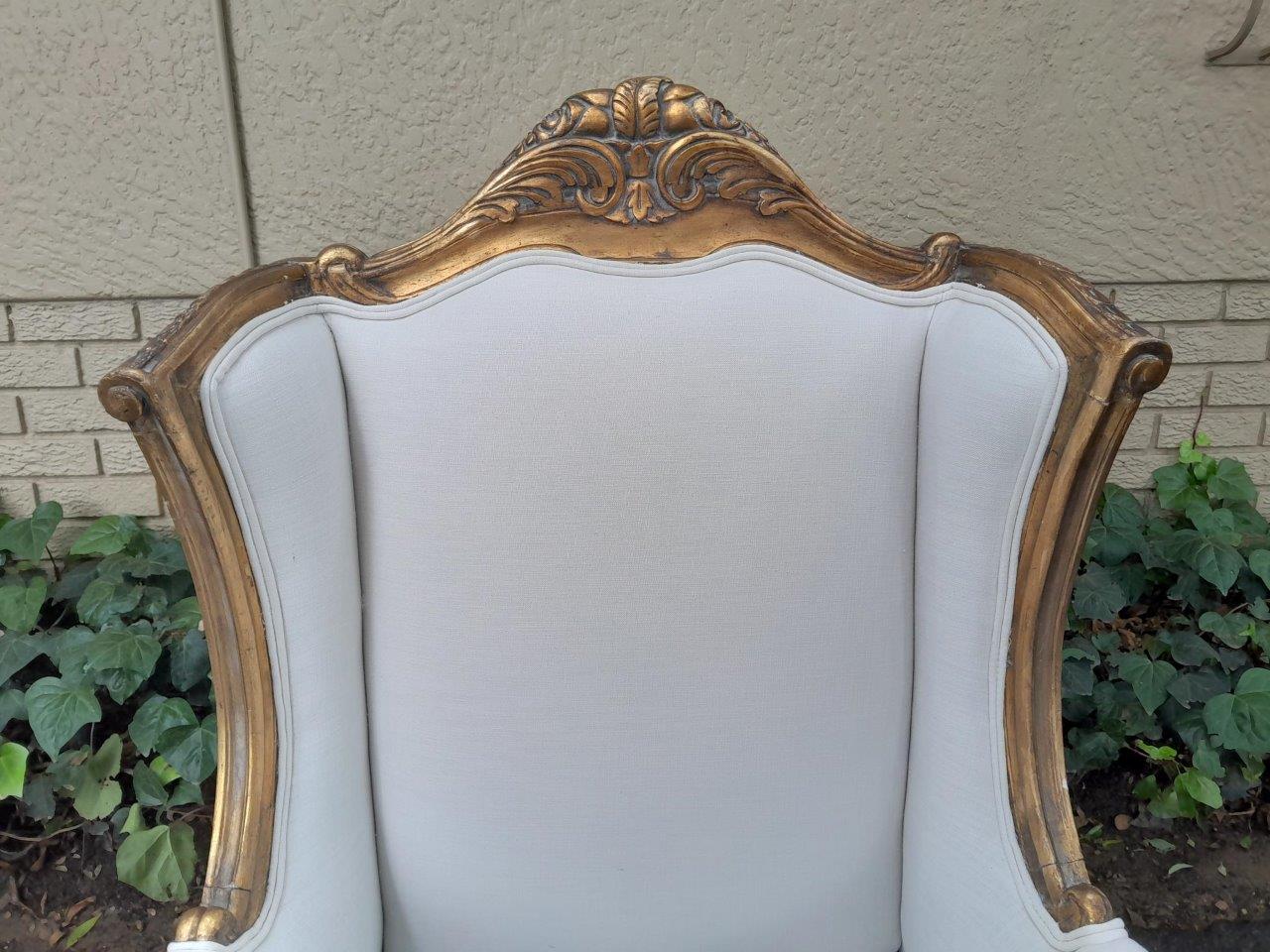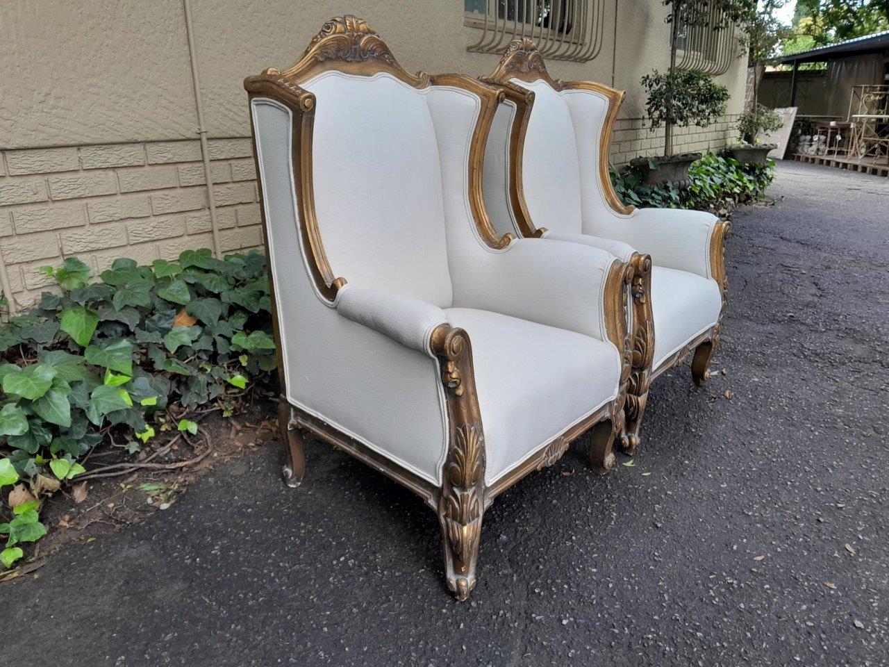 An Ornately Carved Pair Of Giltwood Chairs Upholstered In Leather
