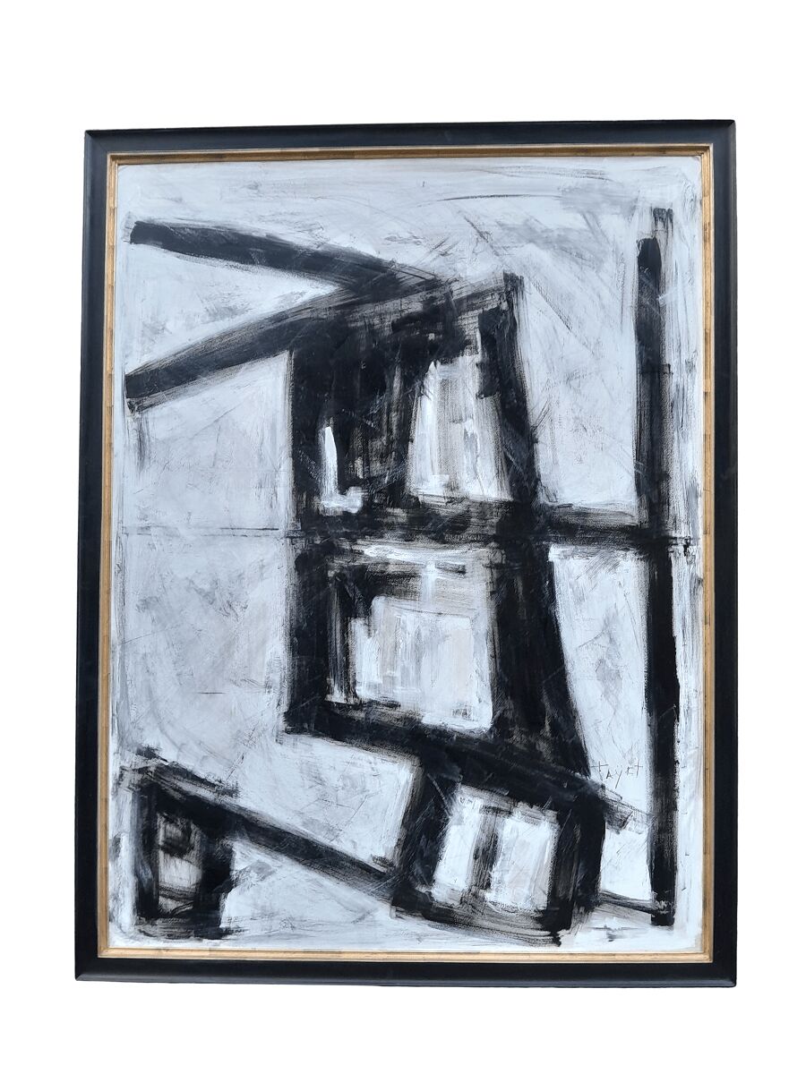 An Ornately Framed Black and White:Abstract Composition Signed of Large Proportions Framed in a Handmade Frame