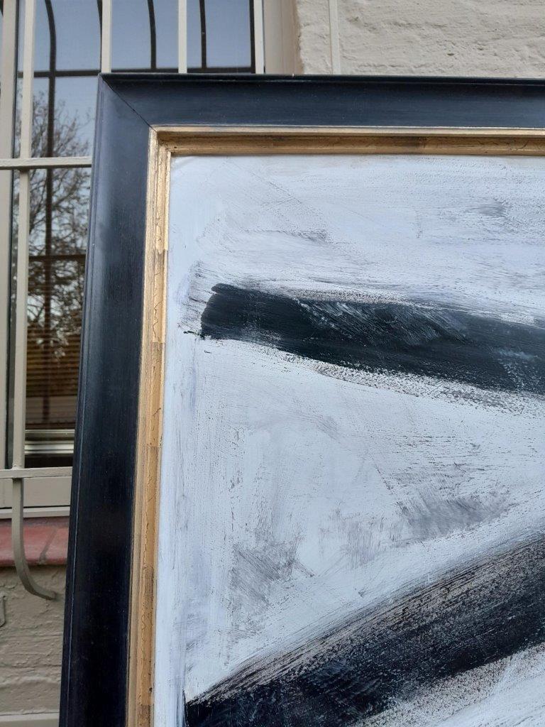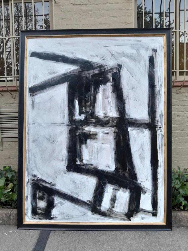 An Ornately Framed Black and White:Abstract Composition Signed of Large Proportions Framed in a Handmade Frame