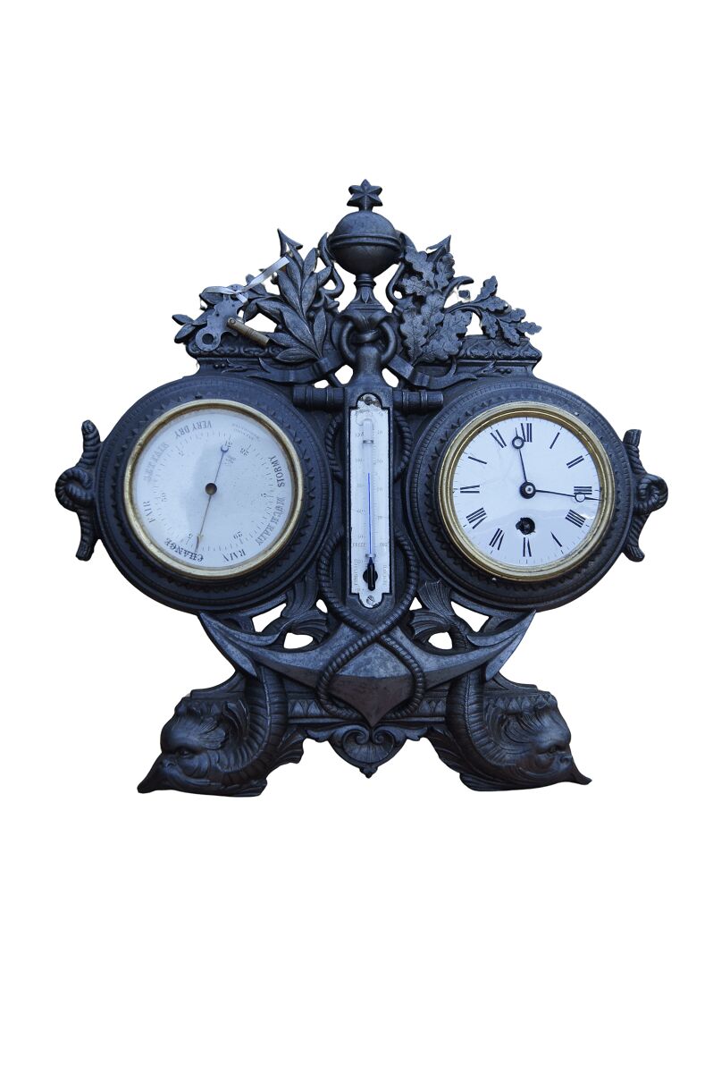 Antique French Cast Iron Clock & Barometer (Size W380 x D220 x H400)