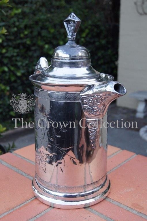 Antique Silver Plate Water Pitcher, Victorian Aesthetic Era, circa 1800