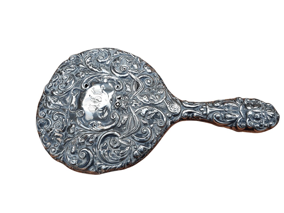 Antique Sterling Silver Hand Held Mirror With Repousse Work – Birmingham 1913