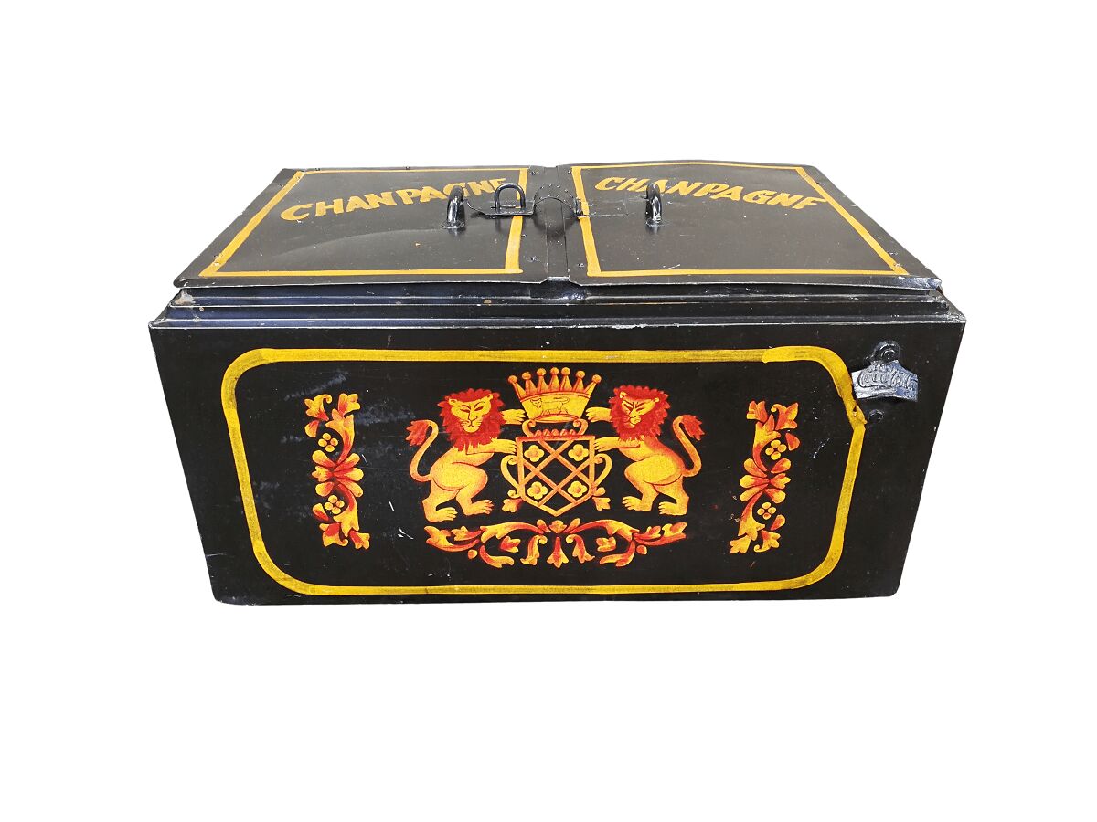 Antique Style Tin Cooler-Box Painted With Coat Of Arms