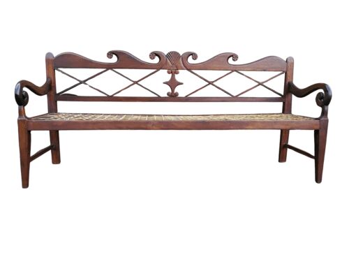 French 19th Century oak carved 3-seater bench, 129cm high, 135cm wide