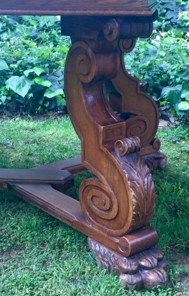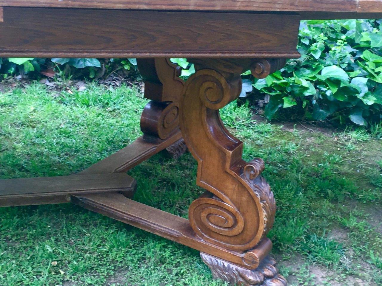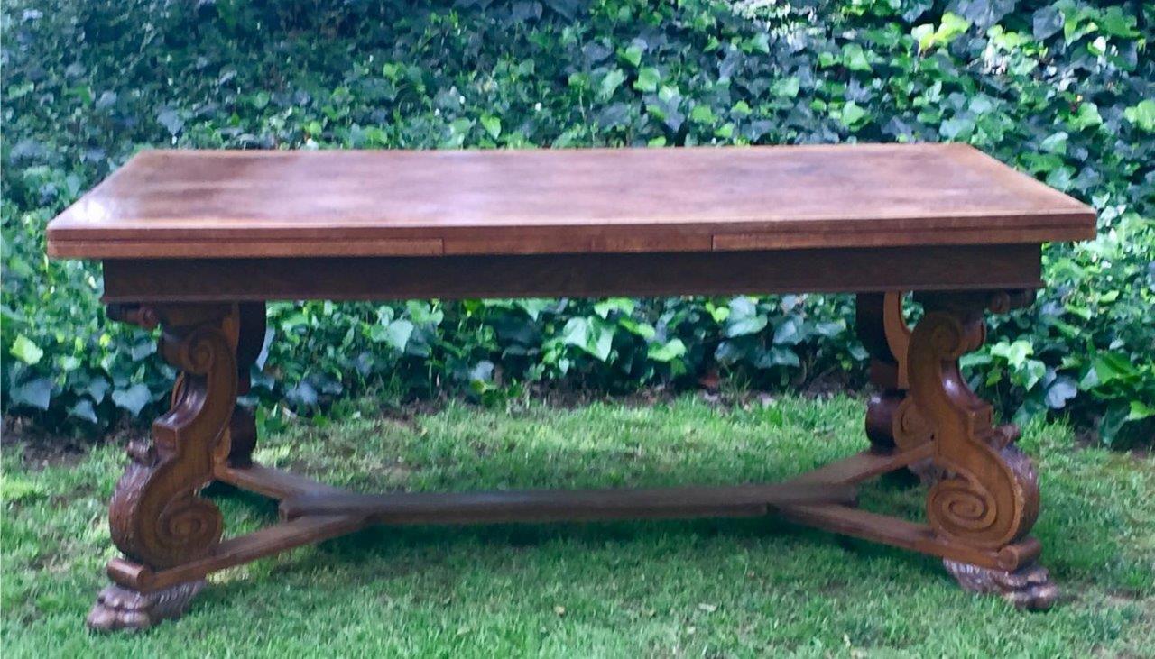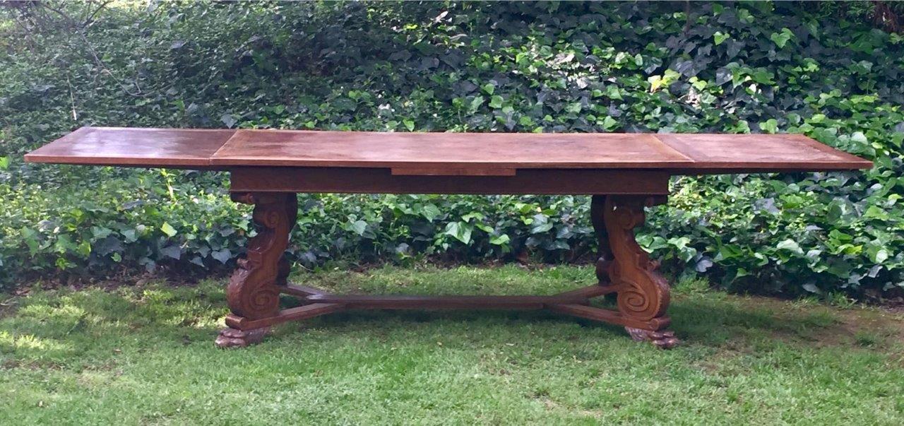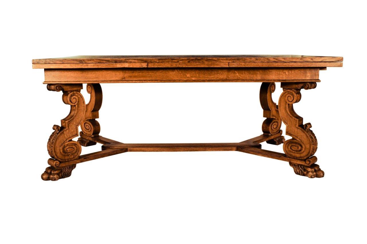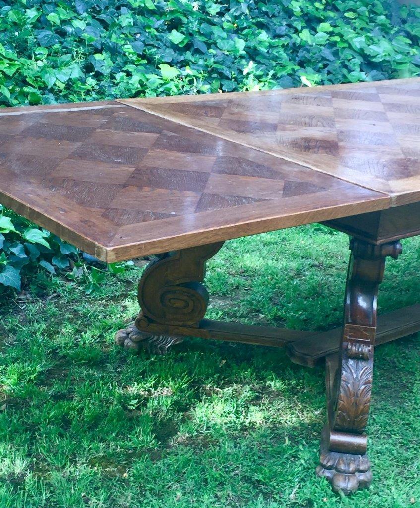 French Oak Parquetry Topped Drawer-Leaf Table, 19th Century