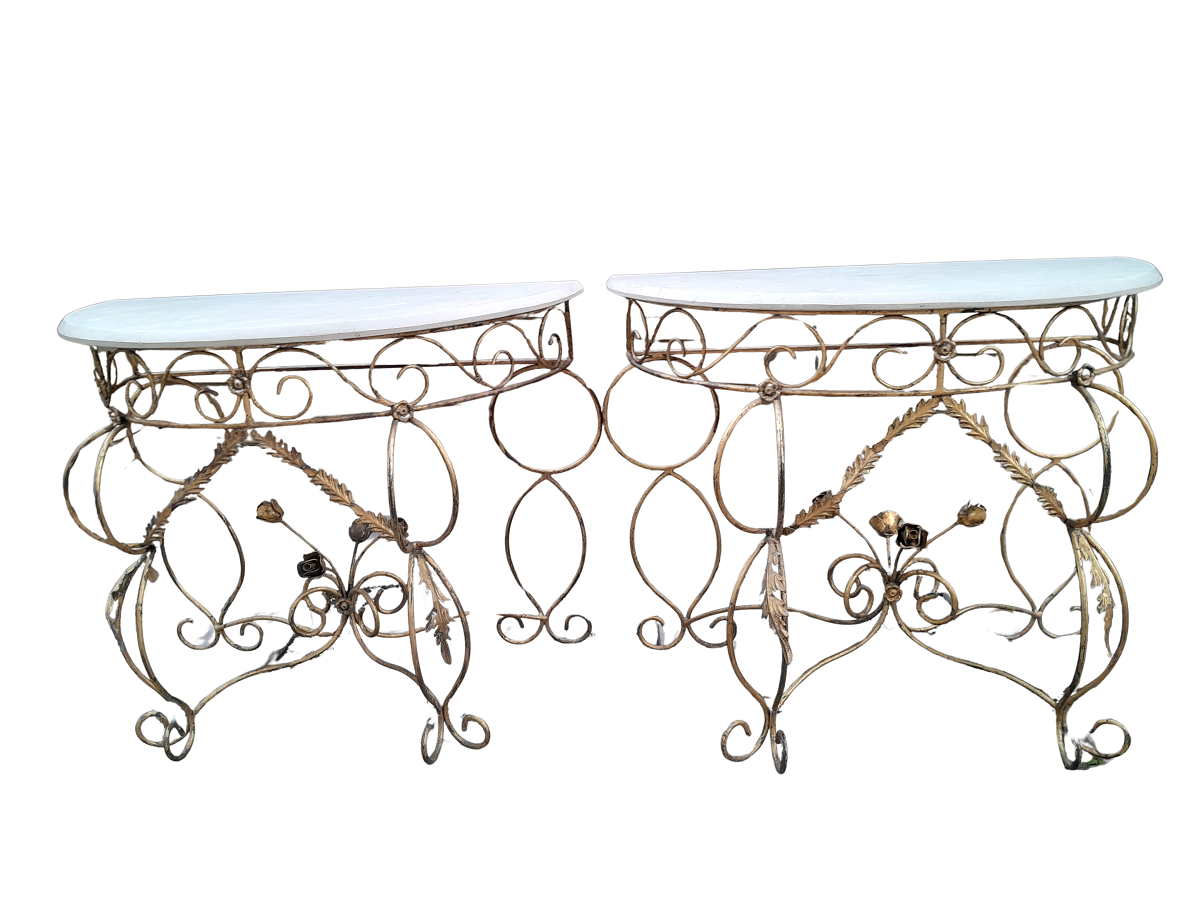 Pair Bespoke Wrought Iron Console /Drinks/ Server/Entrance Table With Marble Top – ND