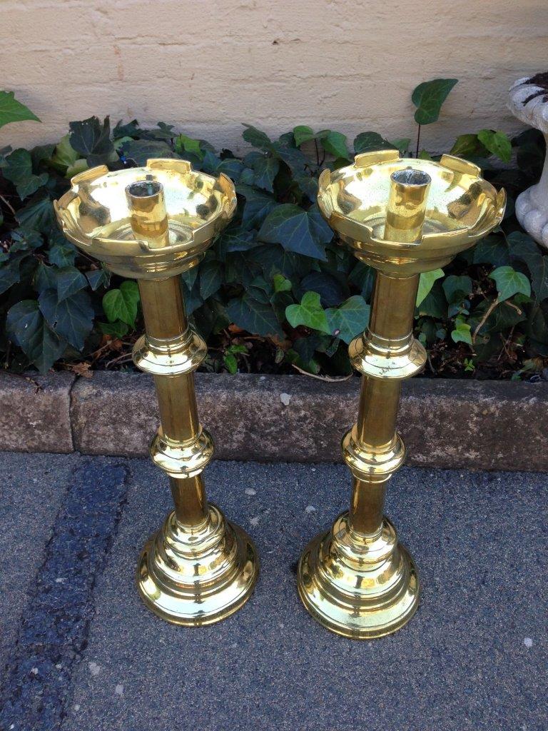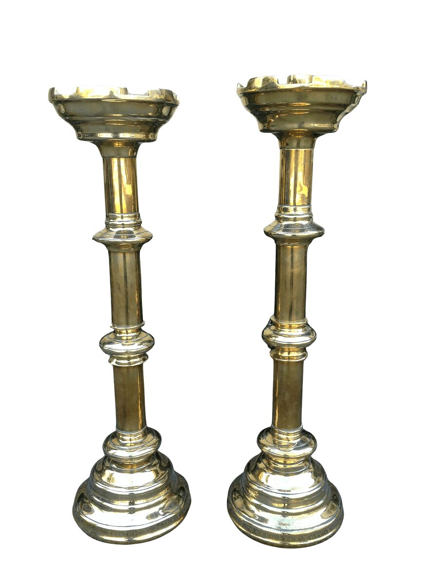 Pair of antique brass alter candlesticks, 19th century