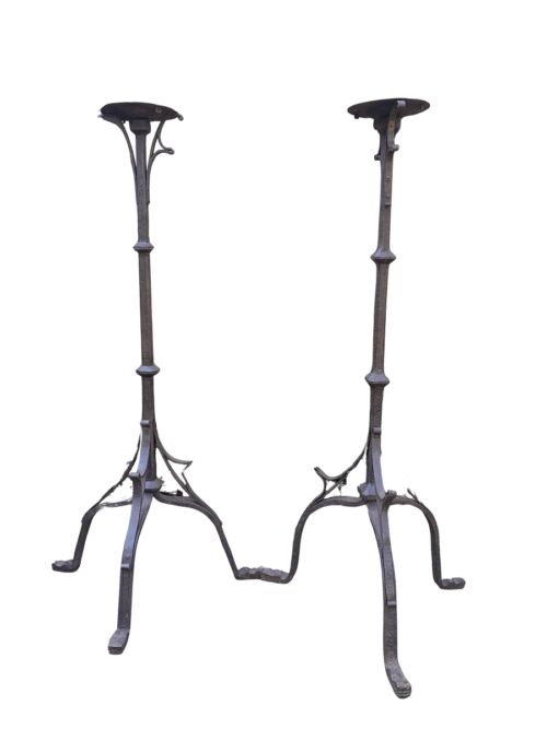 Pair of Distressed Resin Pillar Candlesticks (Size L130 x W130 x H300)