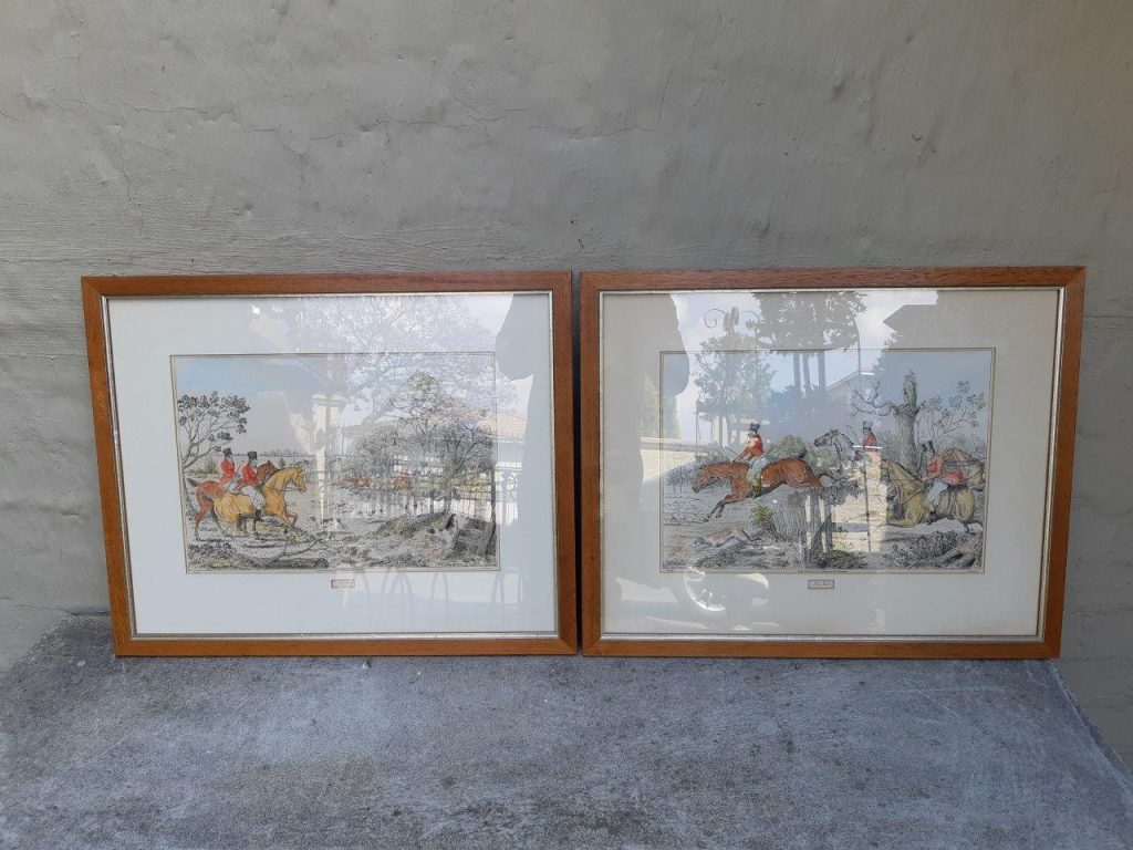 Pair Of Framed Victorian 19th Century Hunting Lithographs