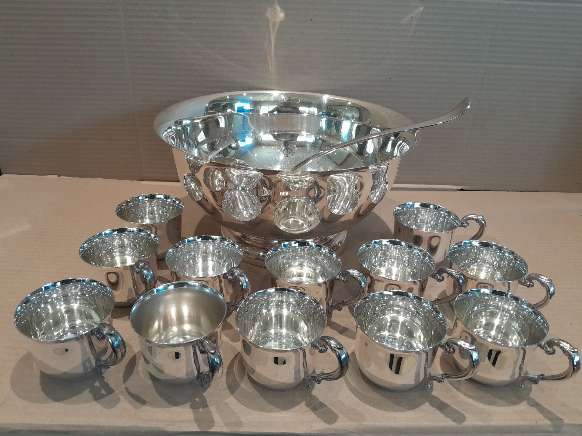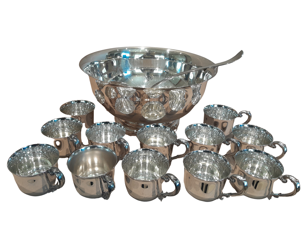 Sheridan Silver Plated Punch Bowl, 12 Cups & Ladle