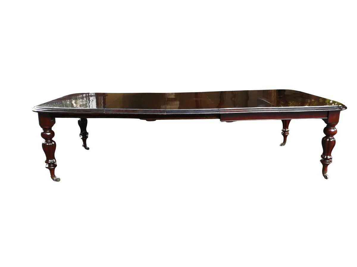 Victorian mahogany almost 3 meter twelve-seater extending dining table on castors (10 Seater)