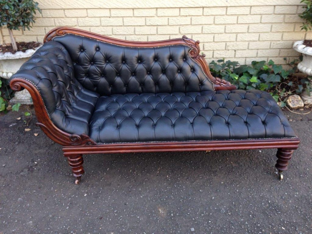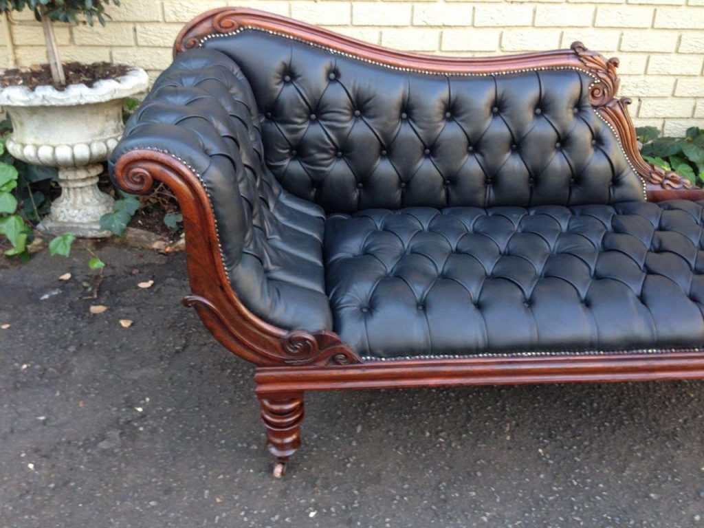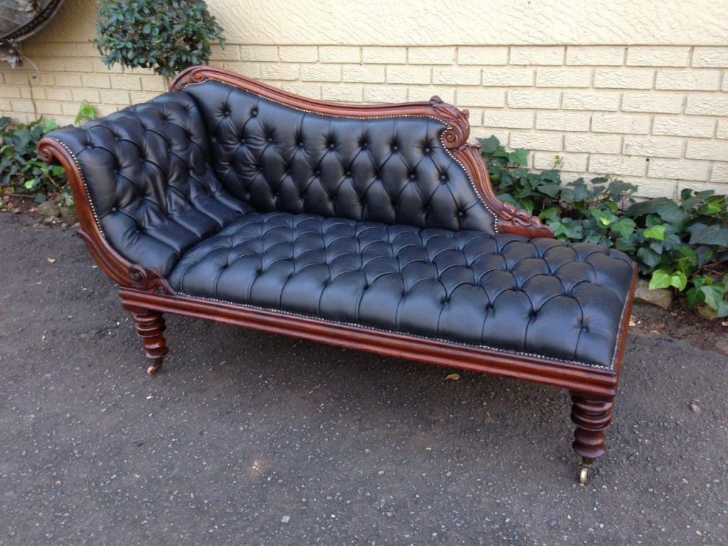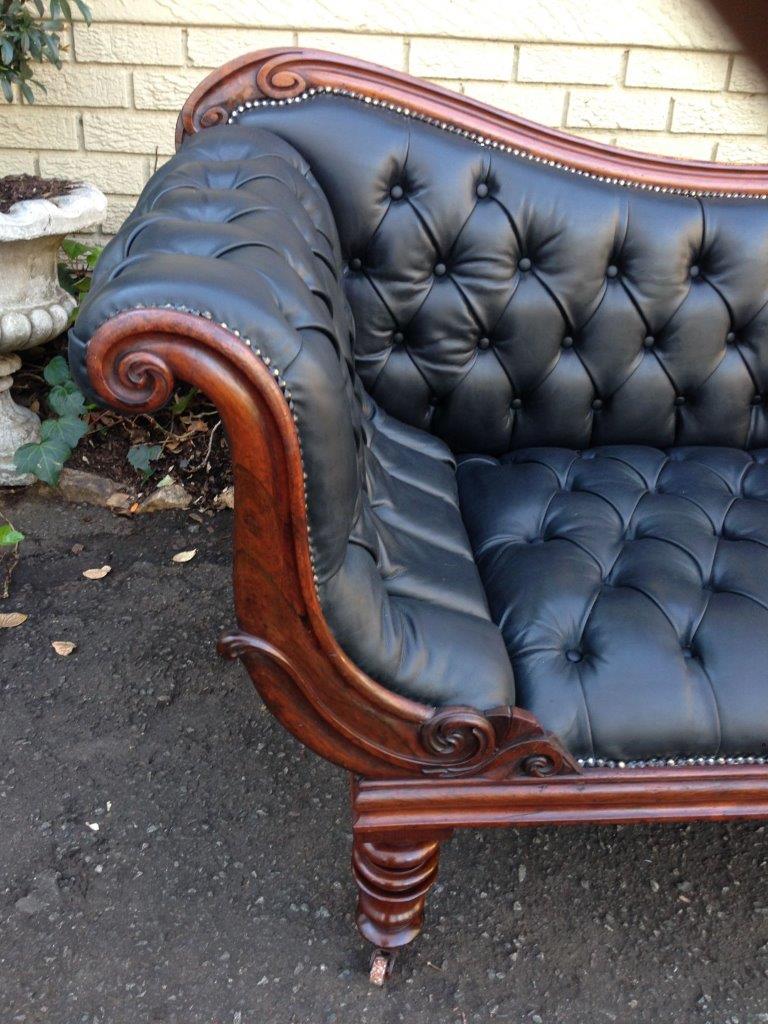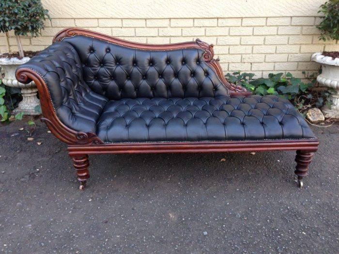 William IV Rosewood Chaise Longue covered in Leather and deep-buttoned