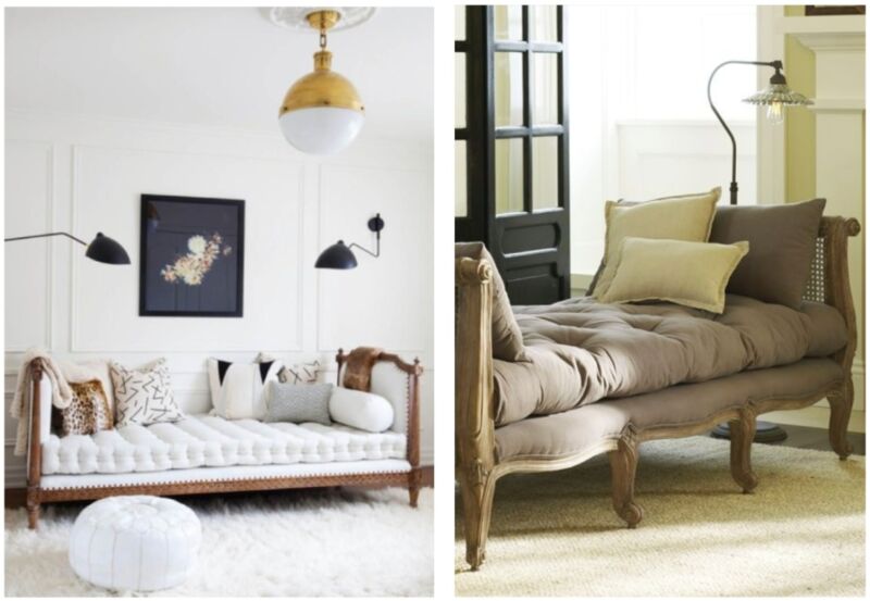 - A curved French daybed adds romance to a hallway, bedroom corner, or dressing area. (Visit this blog for a practical guide on styling French-style daybeds in contemporary spaces.)